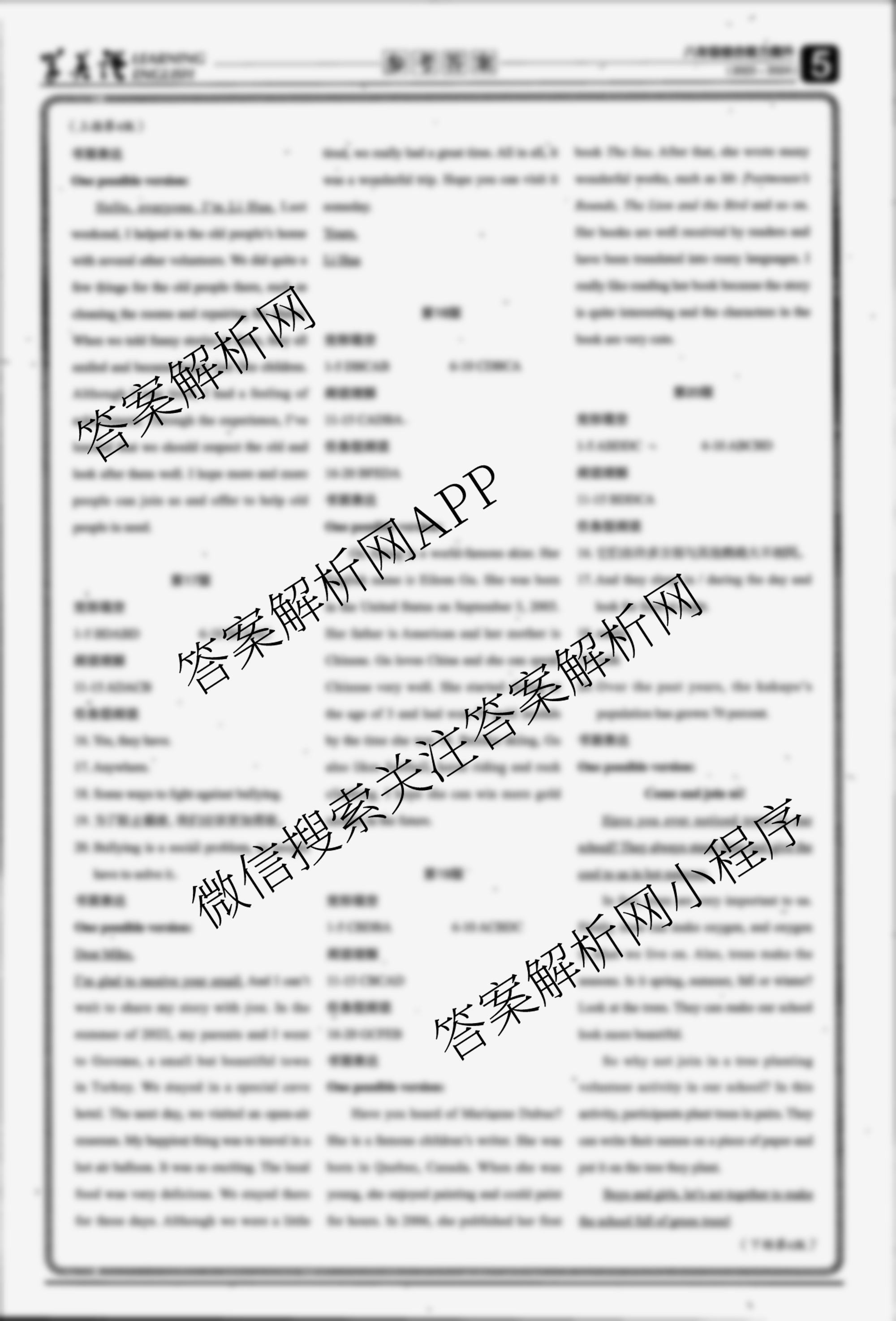 学英语报2023-2024学年(下)八年级 综合能力提升(For Summer)答案