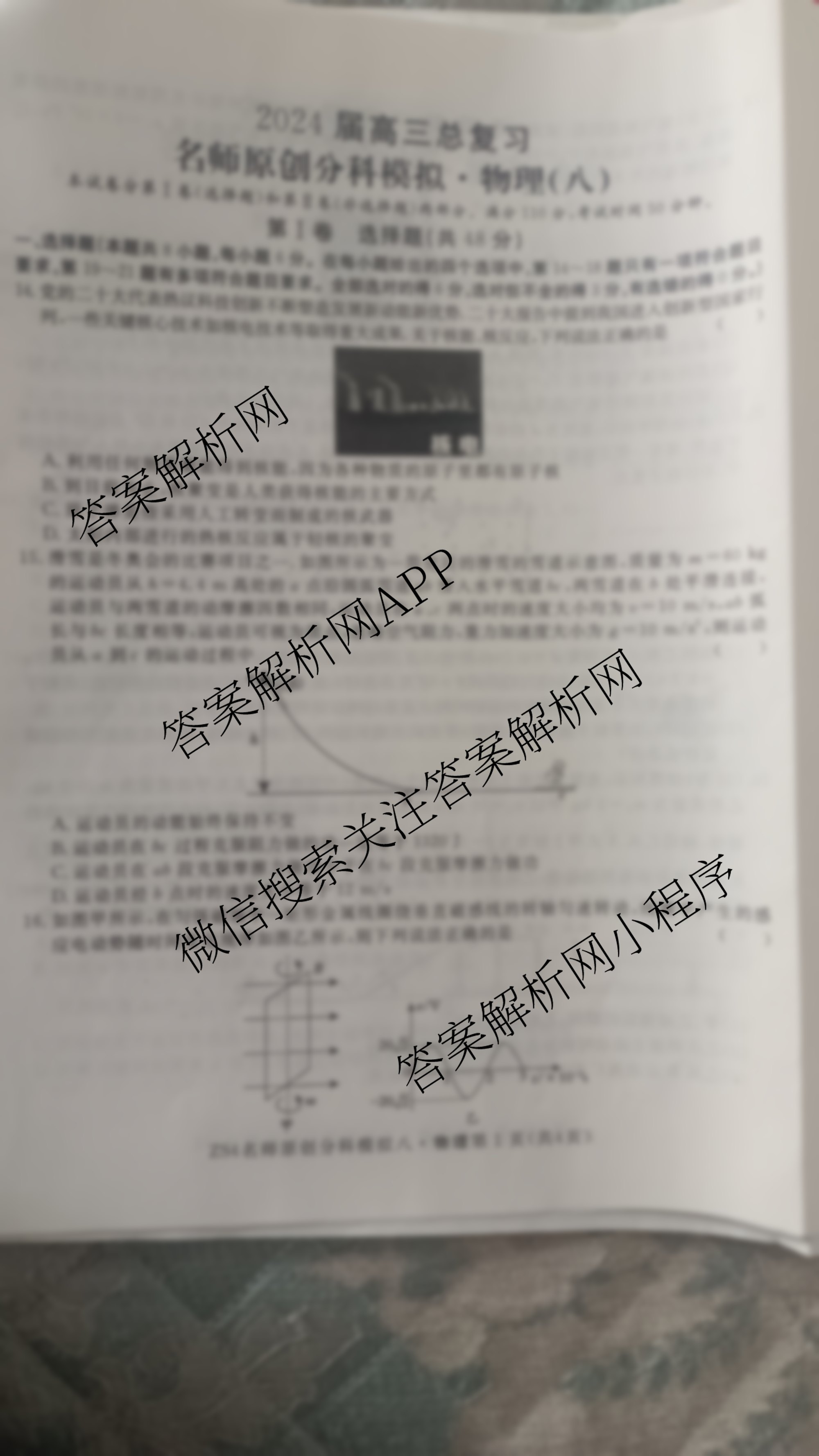 - 2024届高三总复习名师原创分科模拟 物理(ZS4)(八)8答案