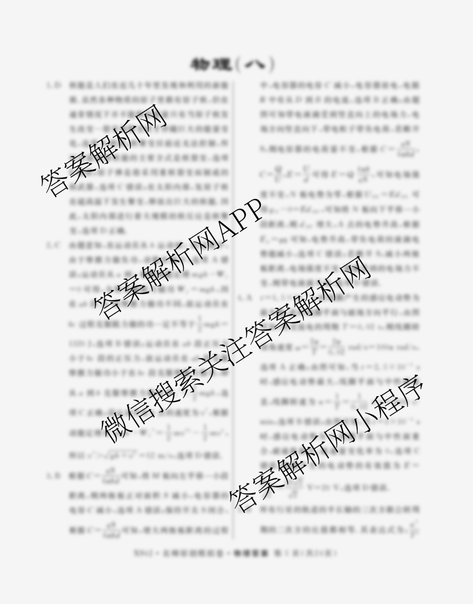 - 2024届[[高三]总复习·名师原创模拟] 物理(XS4J)(八)8答案