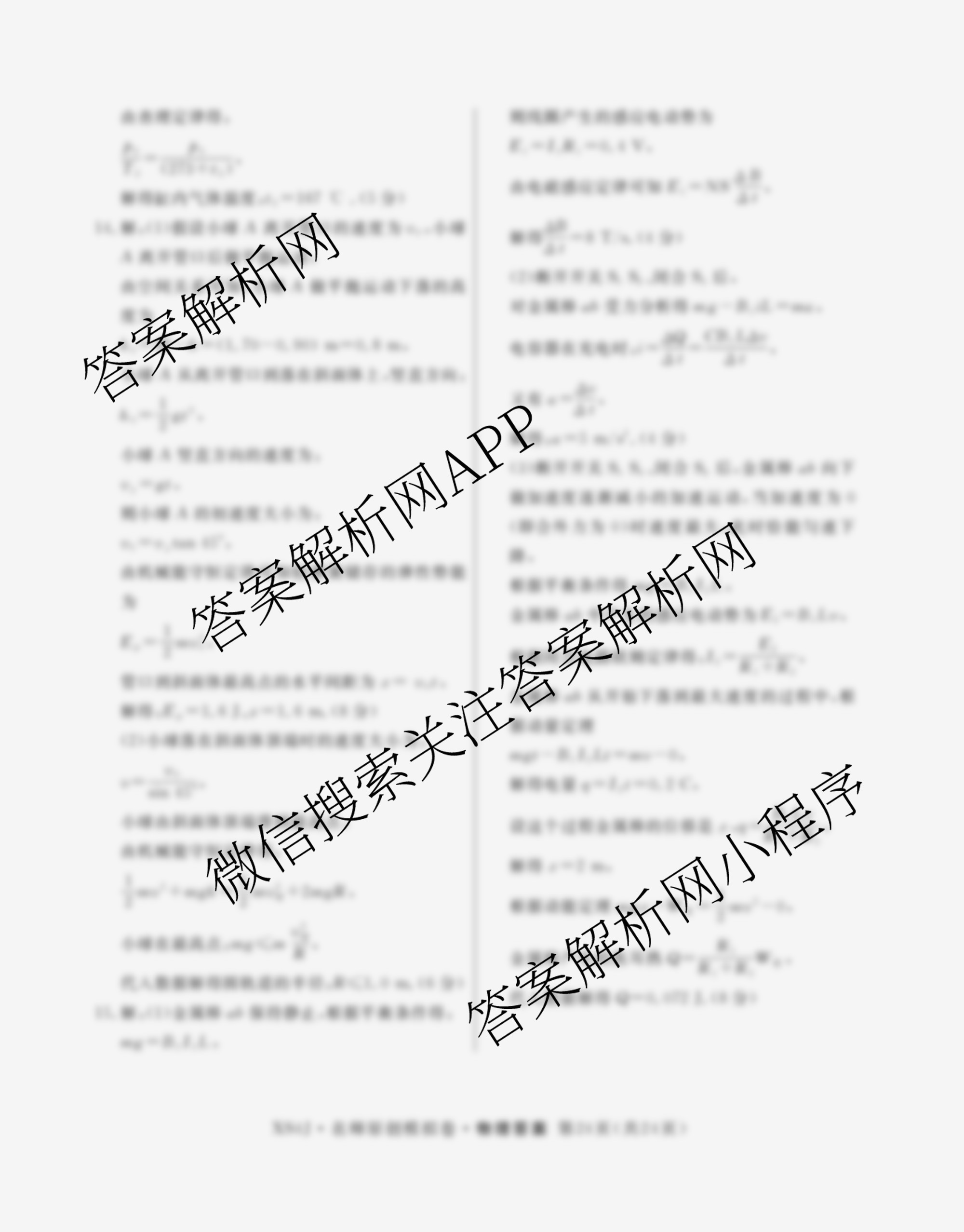- (高三)2024届总复习·名师原创分科模拟 物理(ZS4)(六)6答案