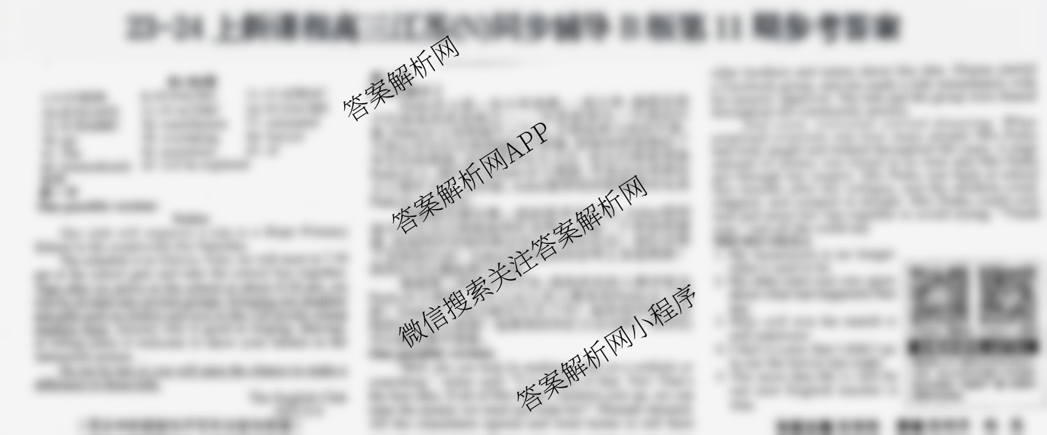 2023-2024学英语报 新课程 高三江苏(N)(同步辅导)B版第11期答案,目前学普试卷已经汇总了2023-2024学英语报 新课程 高三江苏(N)(同步辅导)B版第11期答案的各科答案和试卷,获取更多学英语报答案解析,请在关注本站。