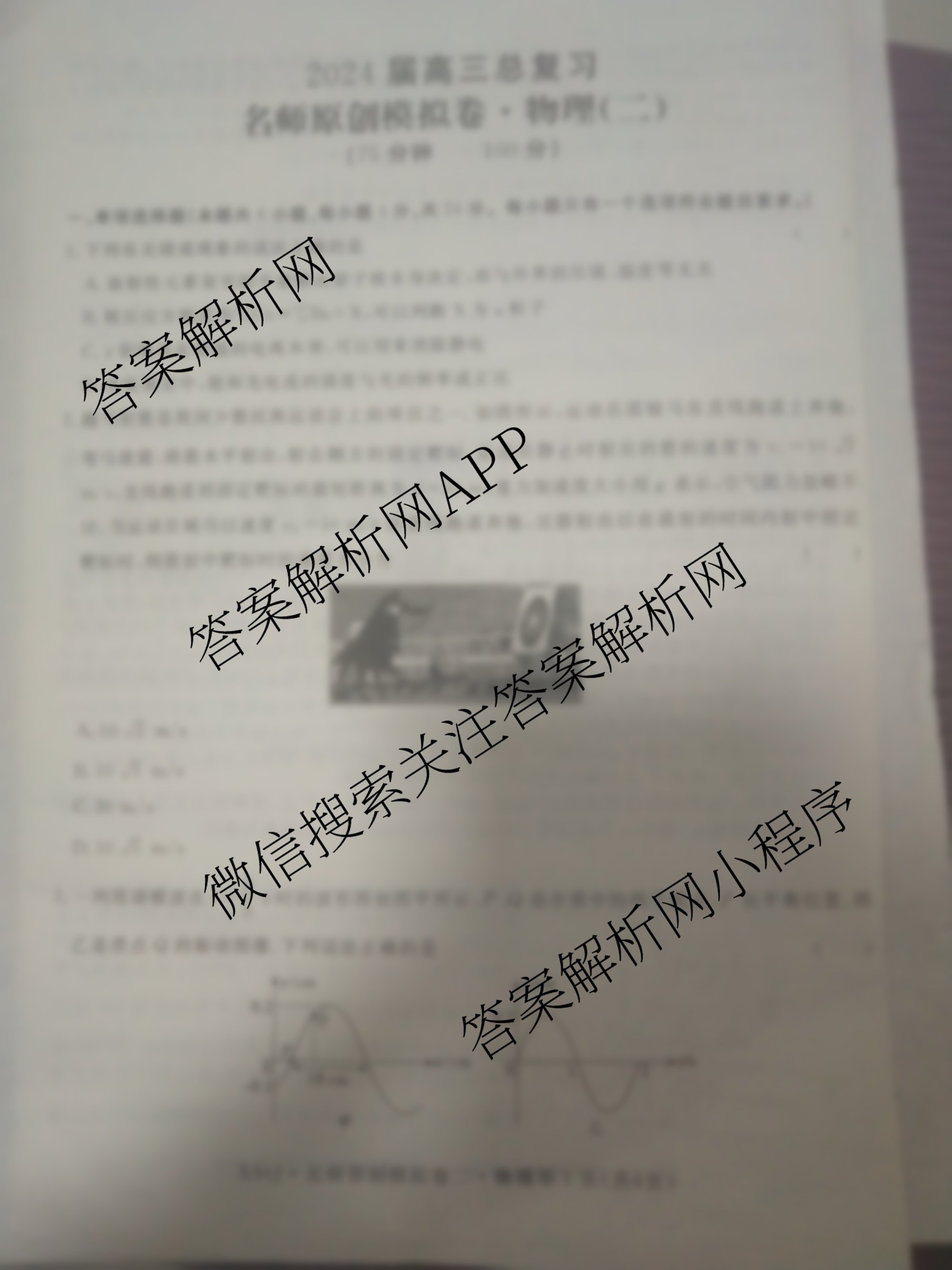 - 2024届[高三]总复习·名师原创分科模拟 物理(S4)(二)2答案