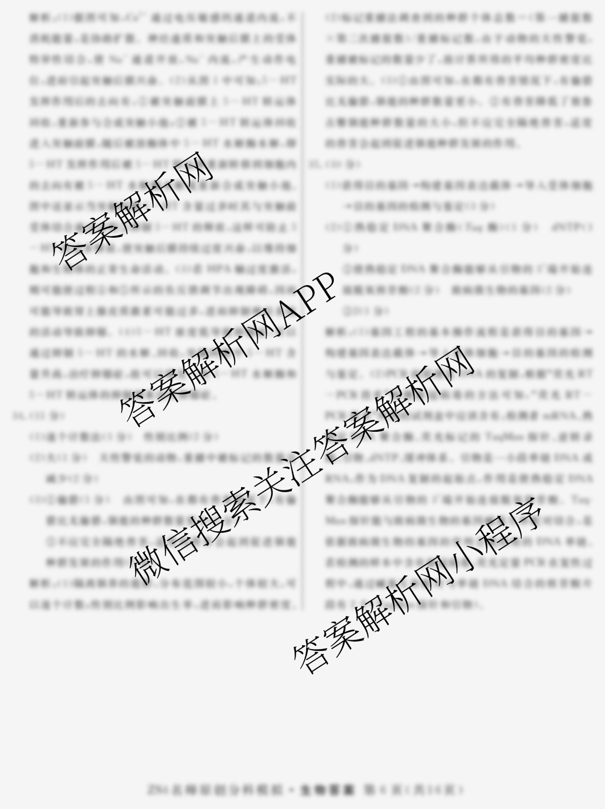 - 2024届[高三]总复习名师原创分科模拟 生物(ZS4)(八)8答案