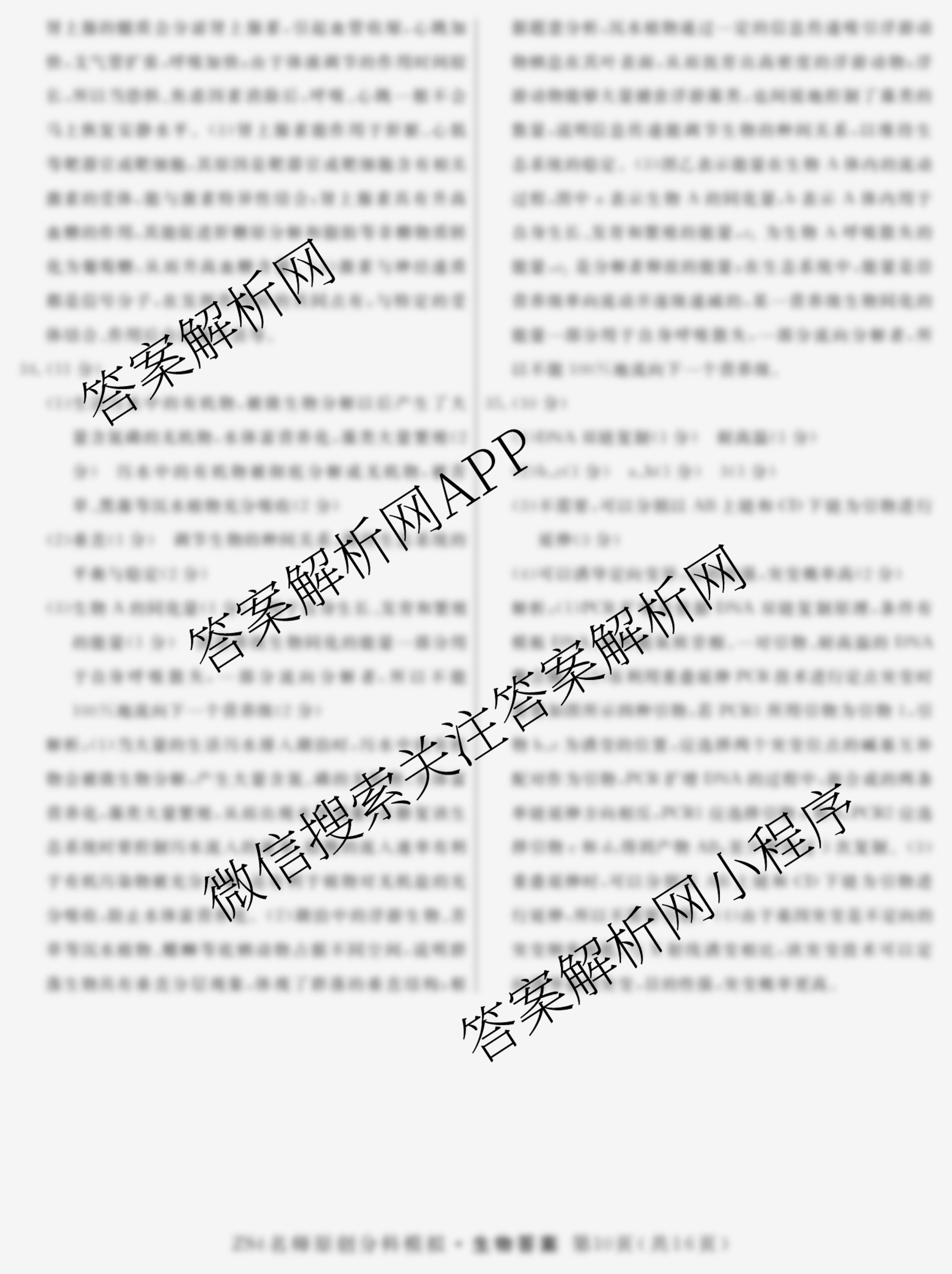 - [高三]2024届总复习·名师原创分科模拟 生物(ZS4)(四)4答案