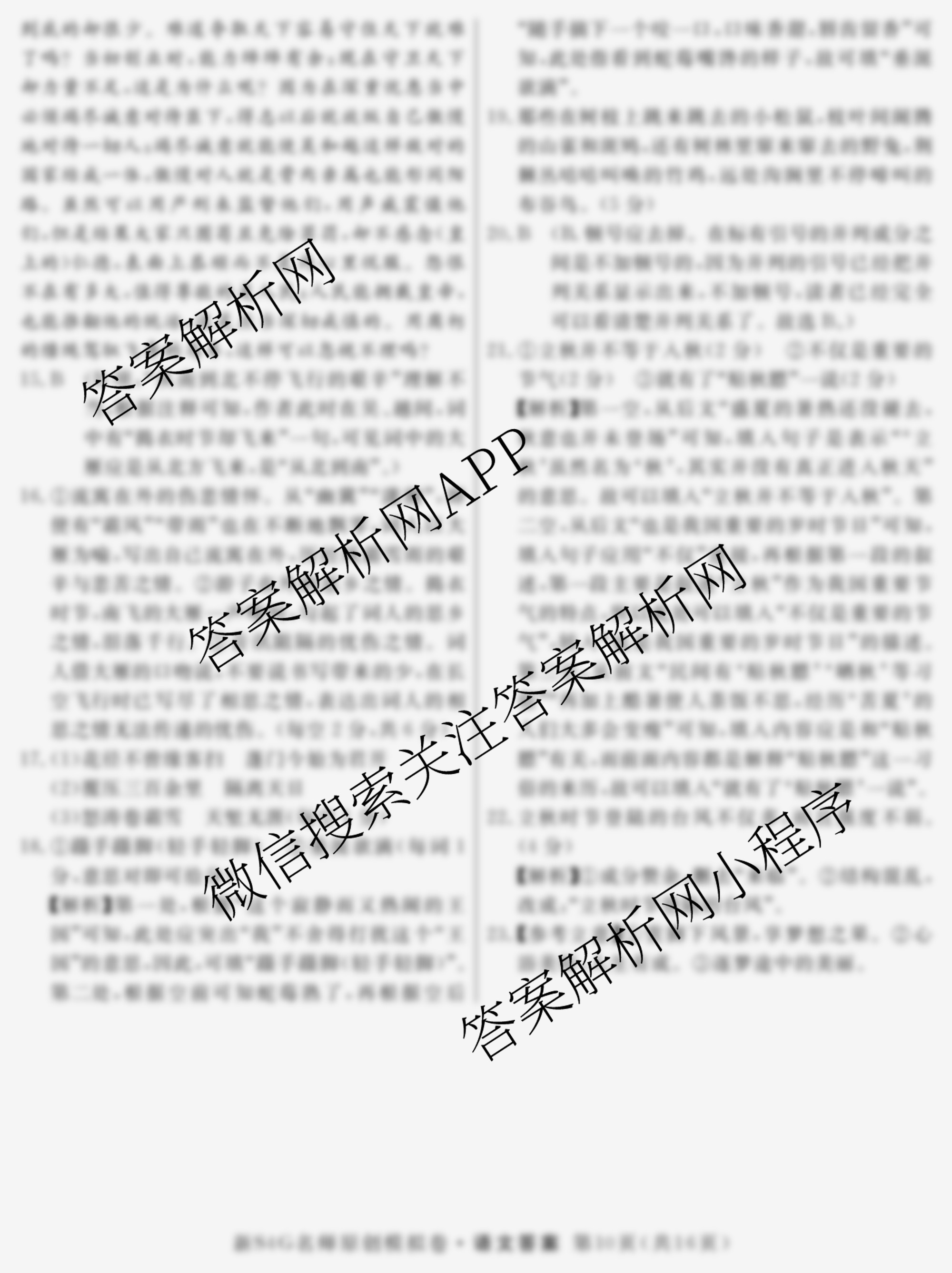 - [高三]2024届[总复习·名师原创模拟] 语文(S4)(四)4答案