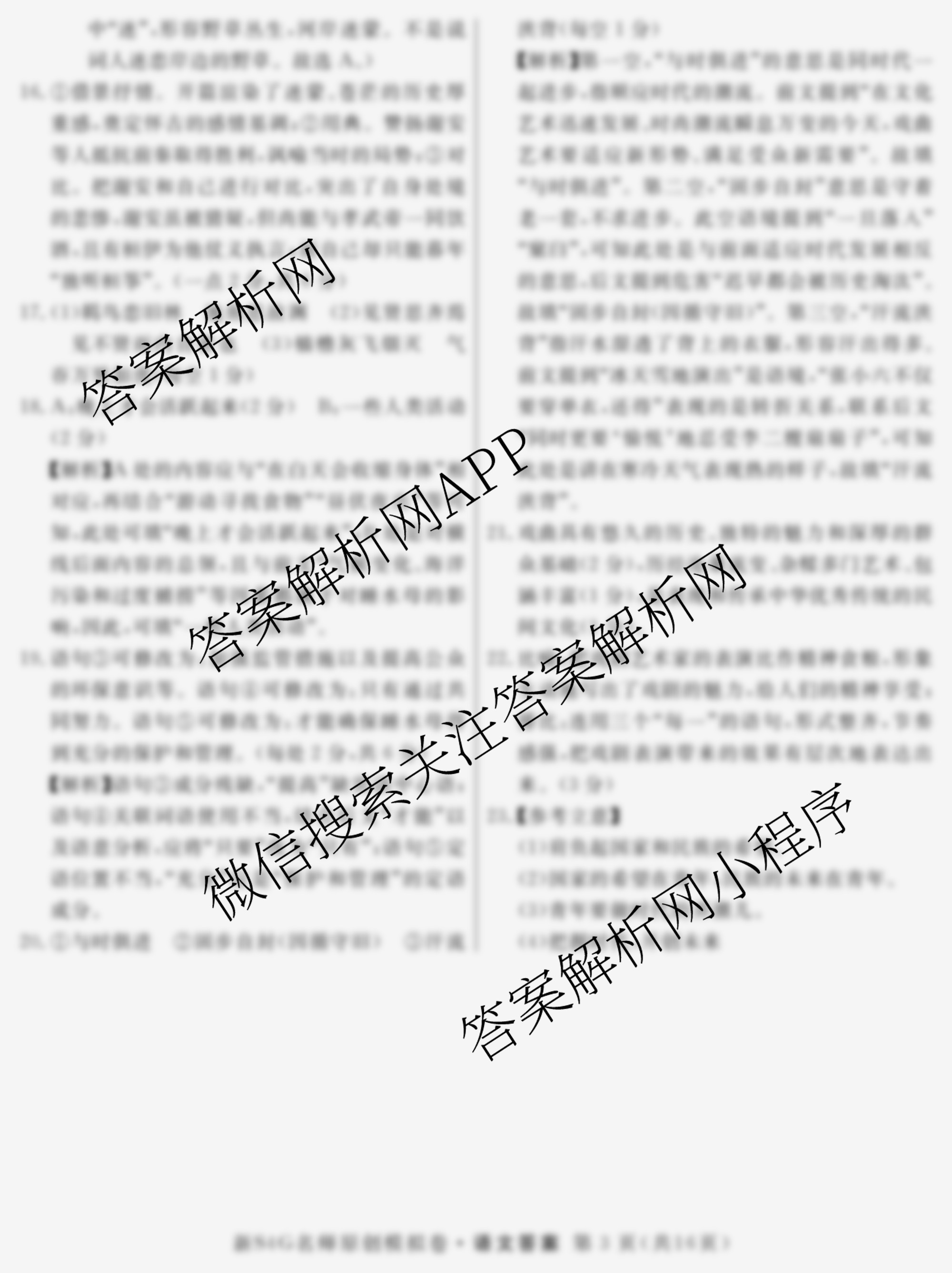 - 2024届(高三)总复习·名师原创分科模拟(七)7语文(S4)答案
