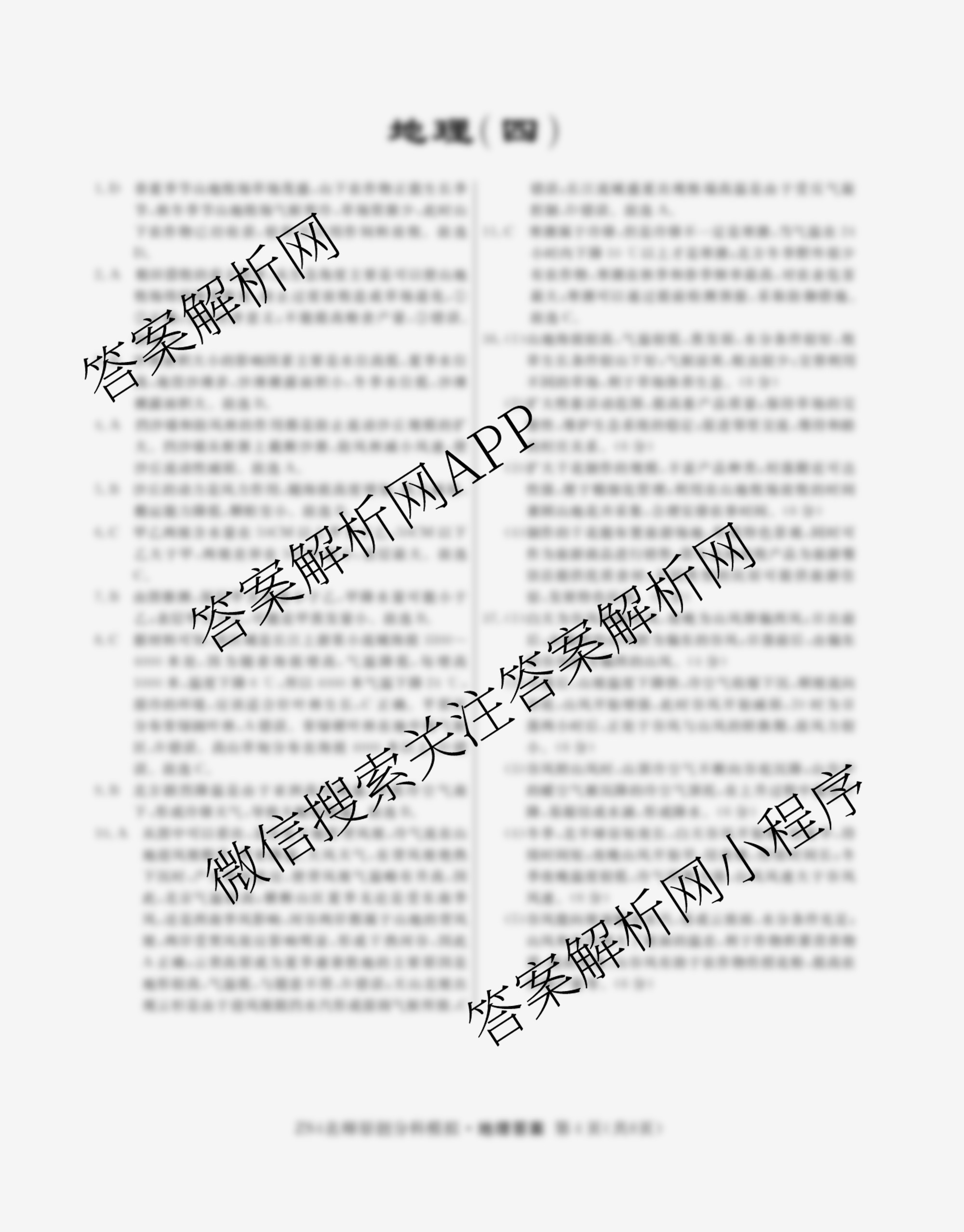 - 2024届高三总复习名师原创分科模拟 地理(ZS4)(四)4答案