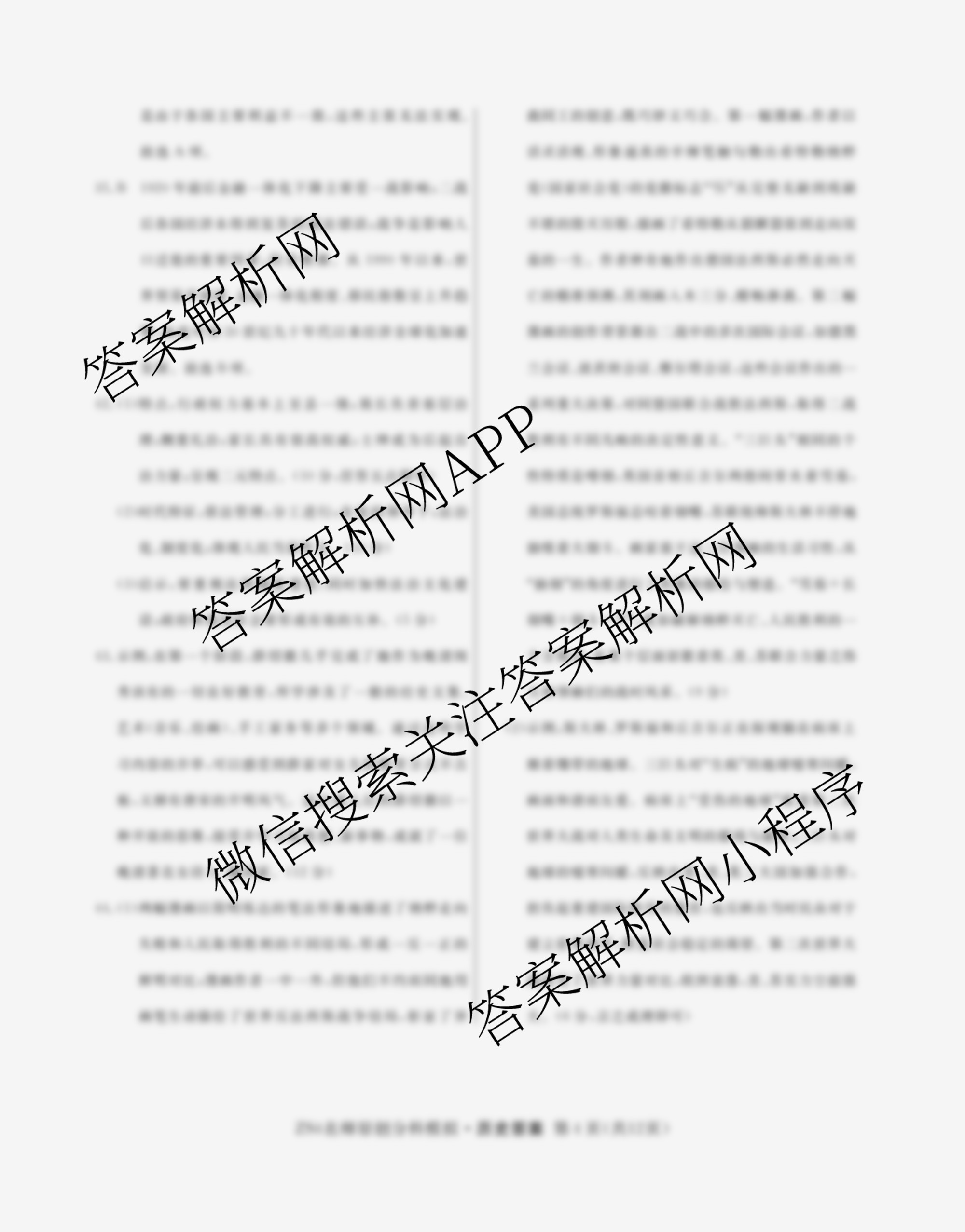 - (高三)2024届总复习·名师原创分科模拟 历史(ZS4)(八)8答案