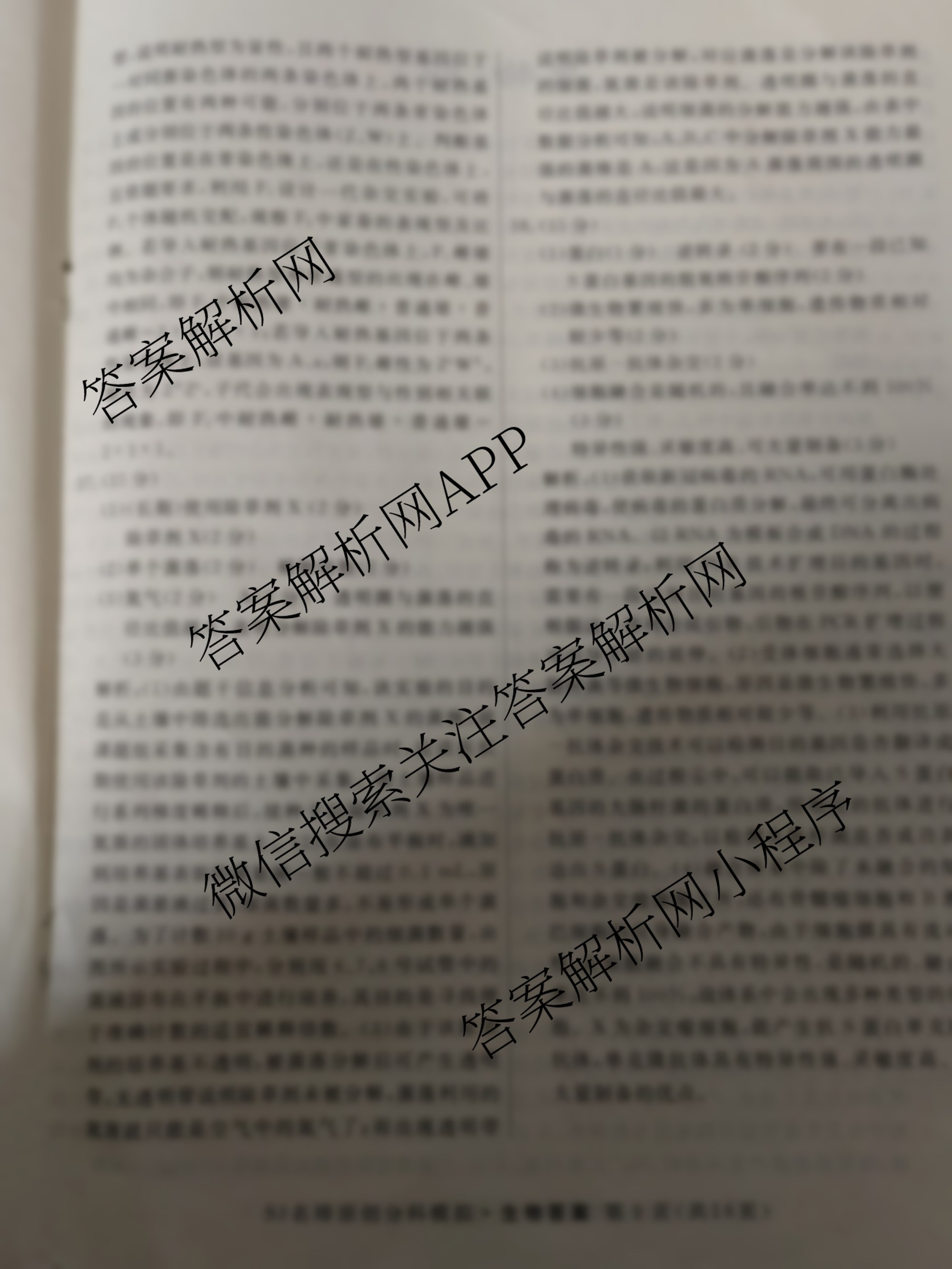 - 2023届高三总复习S3名师原创模拟生物(三)3答案