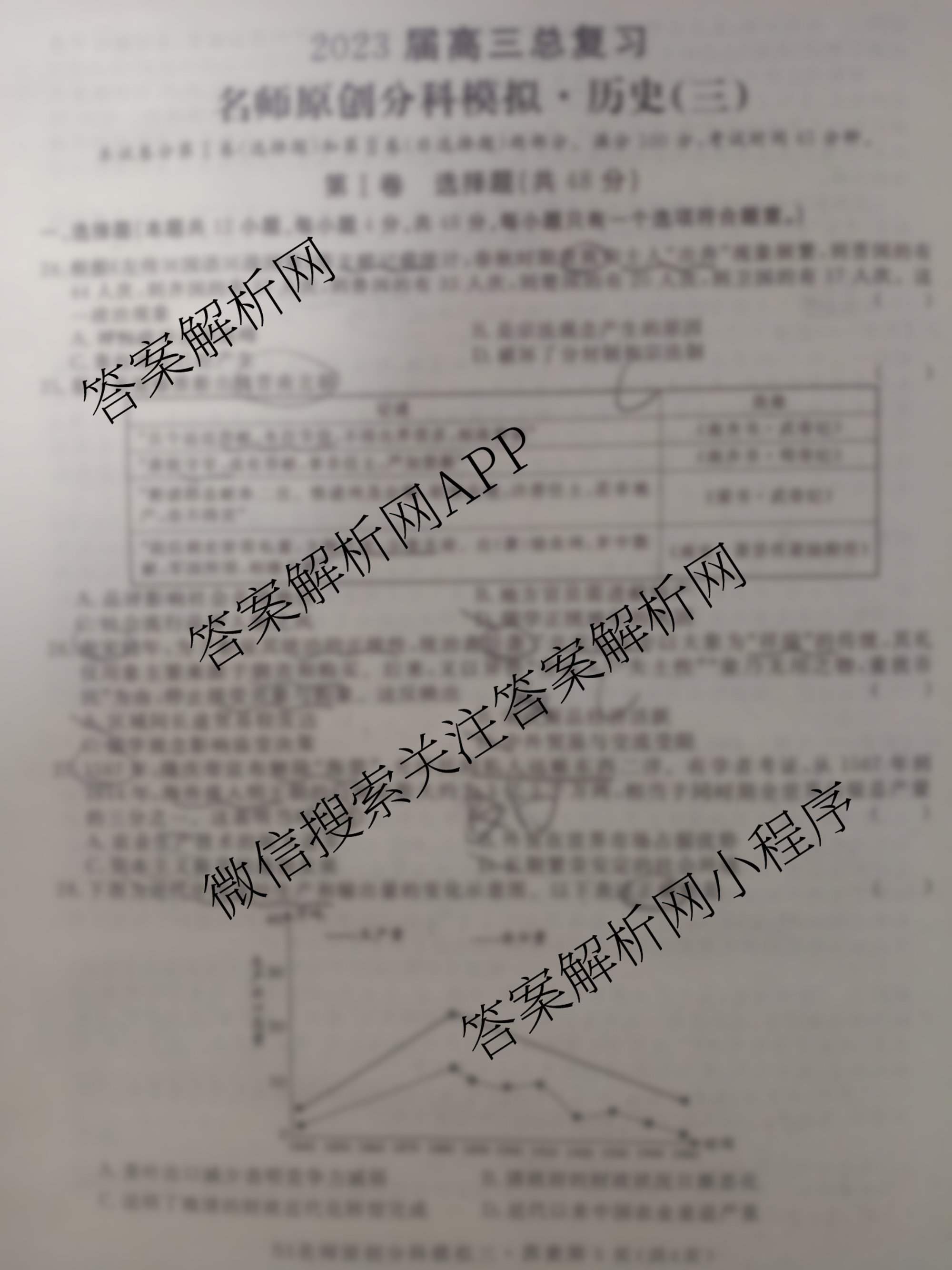 - 2023届高三总复习·S3名师原创模拟 历史(新S3)(三)3答案