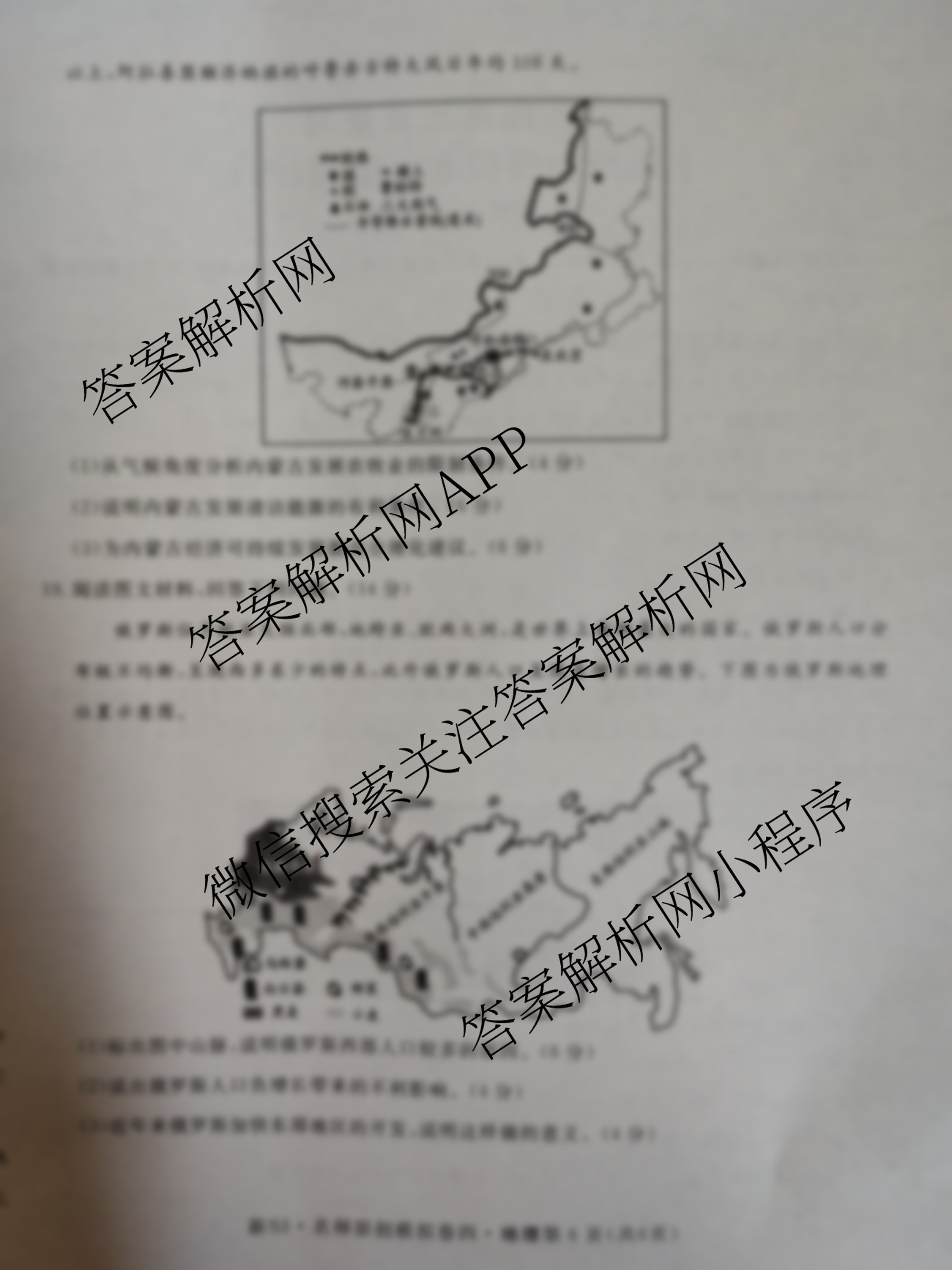 - 2023届[高三]总复习S3名师原创模拟地理(四)4答案