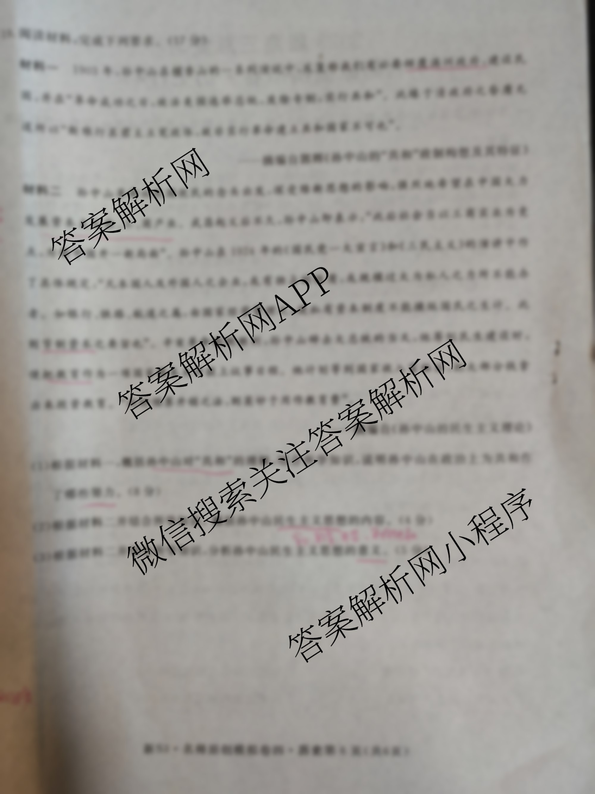 - 2023届[高三]总复习·S3名师原创分科模拟政治(四)4答案