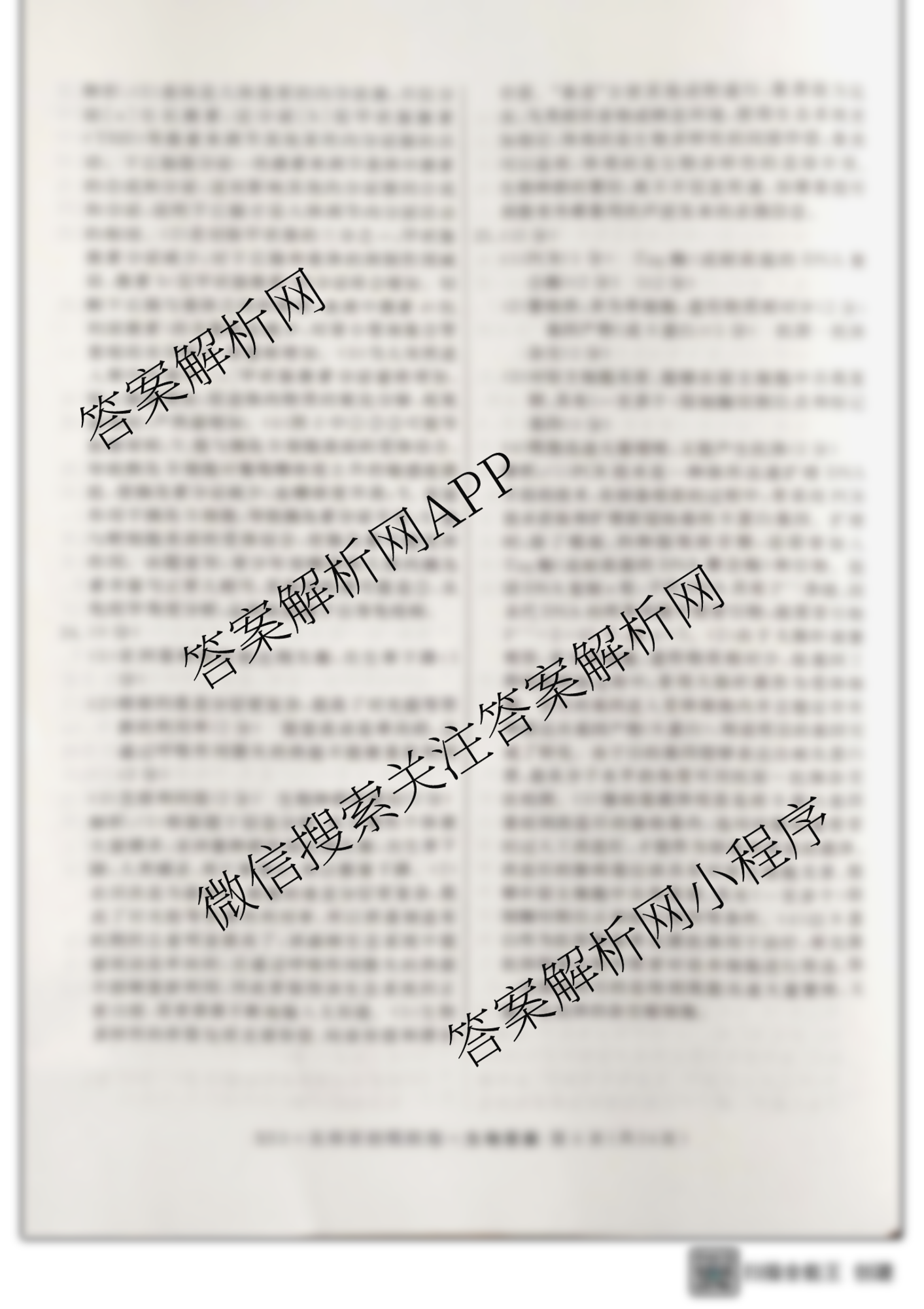 - 2023届(高三)总复习S3名师原创模拟 文综(一)1答案