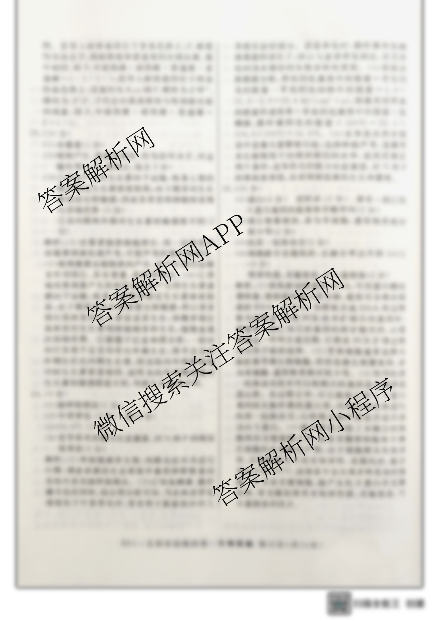 - 2023届高三总复习S3名师原创模拟生物(三)3答案