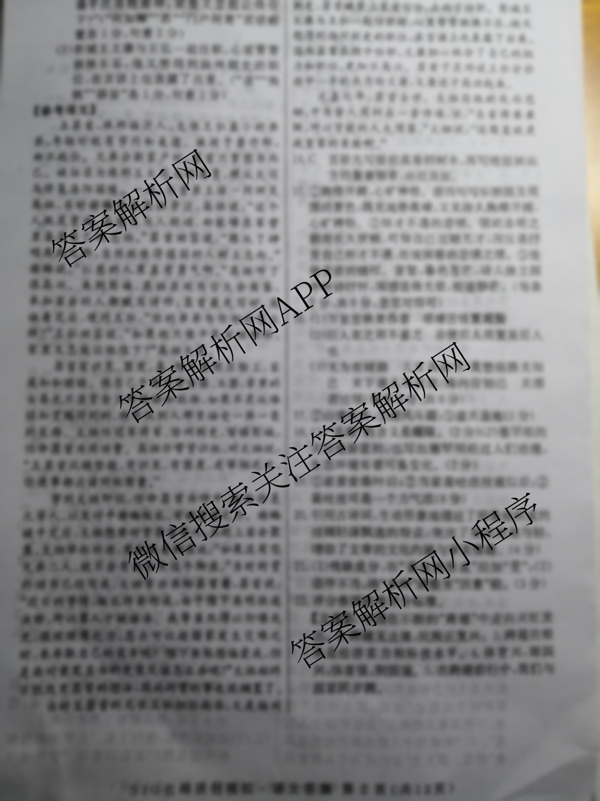 - 2023届(高三)总复习·XS3 名师原创模拟语文 (一)1答案