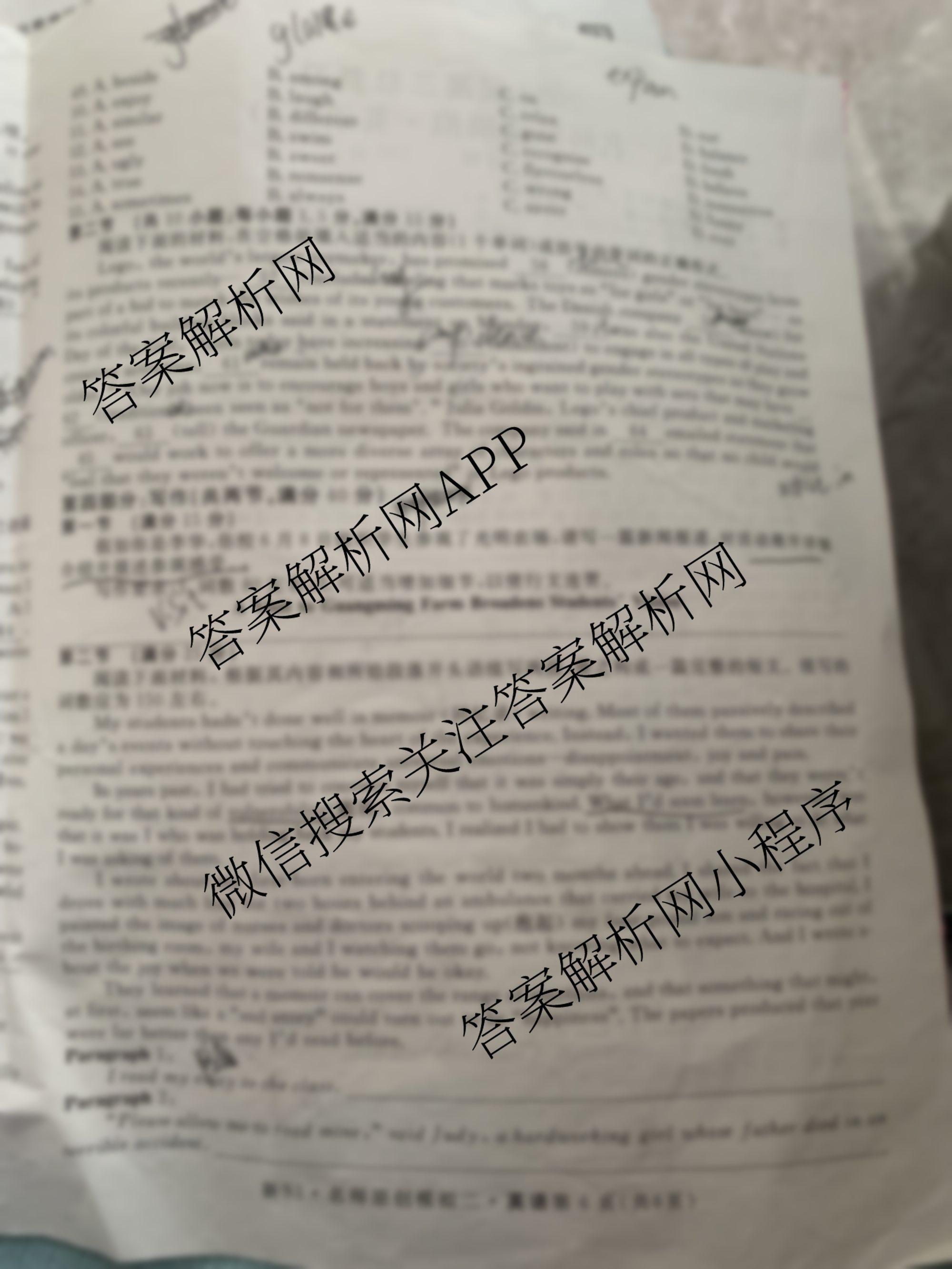 2023届高三总复习·新S3 名师原创模拟英语(二)2试题,目前学普试卷已经汇总了2023届高三总复习·新S3 名师原创模拟英语(二)2试题的各科答案和试卷,获取更多高三总复习·名师原创模拟答案解析,请在关注本站。