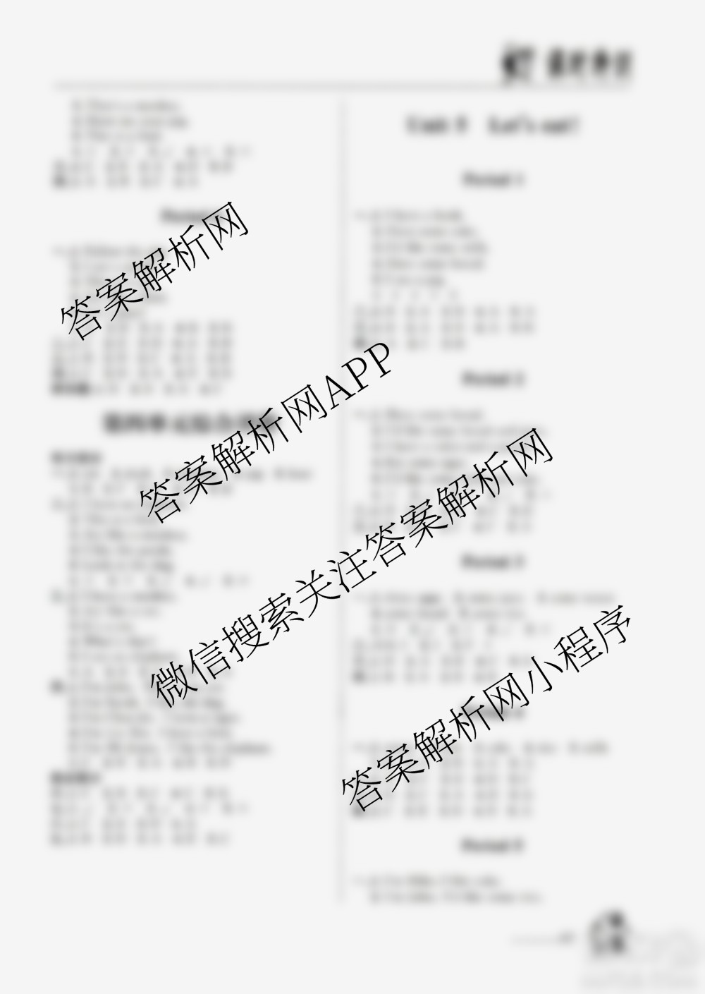 浙江大学出版社2020年课时特训英语三年级上册P人教版答案