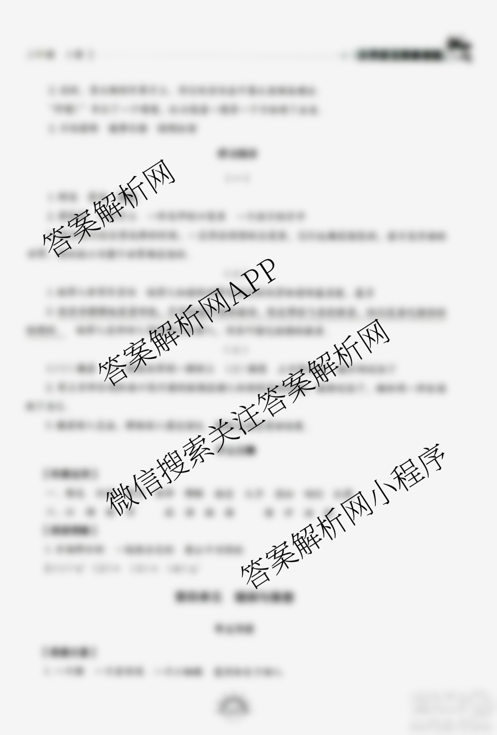 山东教育出版社2020年小学语文基础训练三年级上册五四制答案