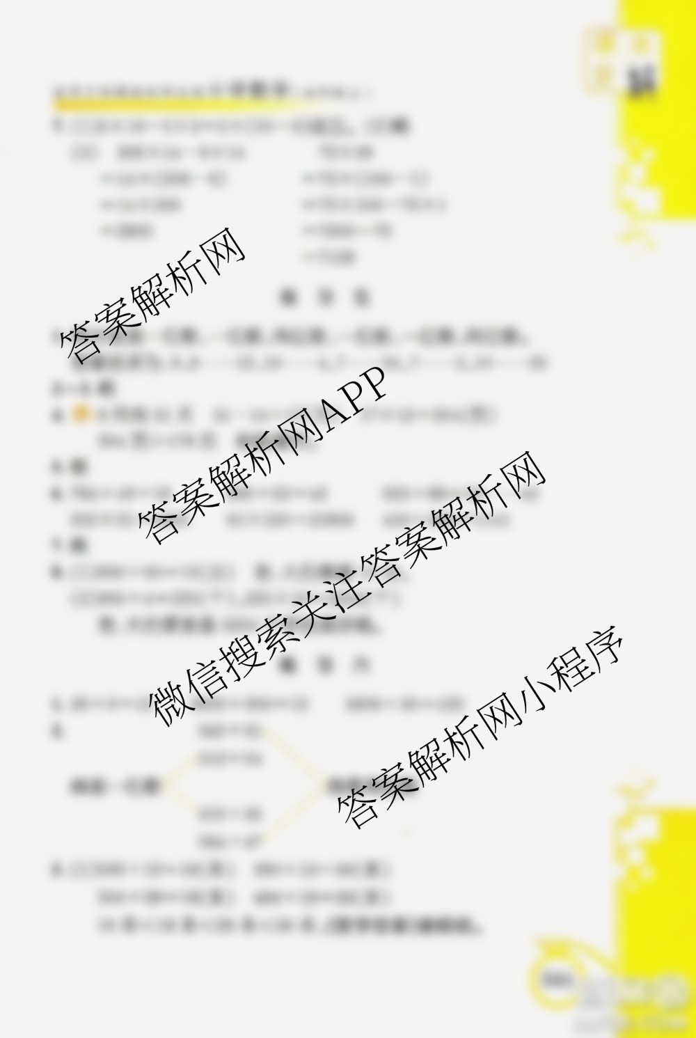 安徽人民出版社2020课本全解小学数学四年级上册B版答案