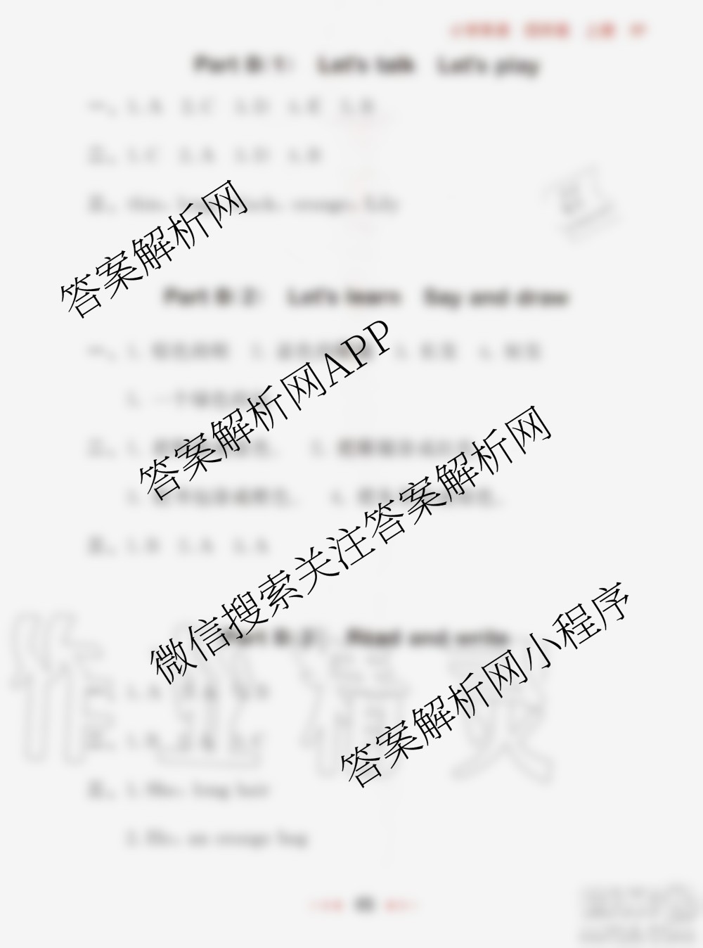 2020秋小儿郎53随堂测四年级英语上册人教版参考答案