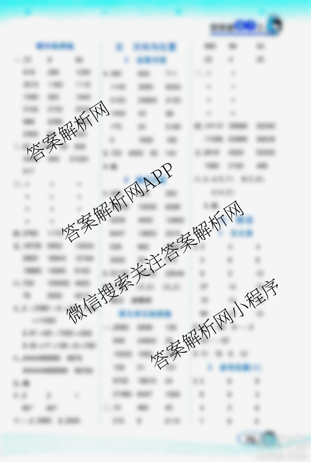 西安出版社2020年帮你学口算题卡数学四年级上册BS北师版参考答案