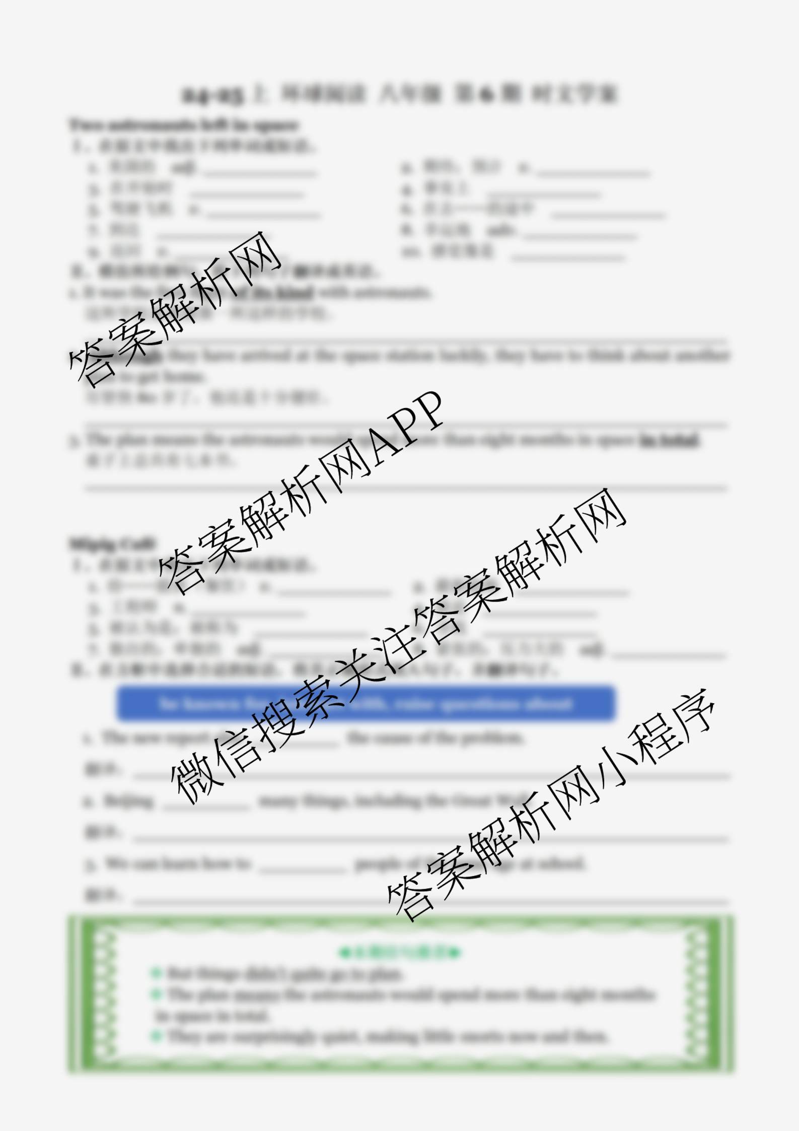 2024-2025 学英语报 环球阅读八年级 第6期答案,目前学普试卷已经汇总了2024-2025 学英语报 环球阅读八年级 第6期答案的各科答案和试卷,获取更多学英语报答案解析,请在关注本站。