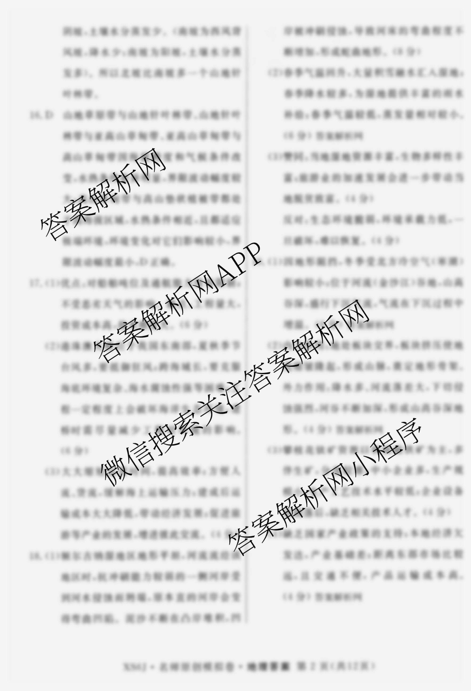 - (高三)2026届总复习名师原创模拟(一)1地理(XS6J)答案