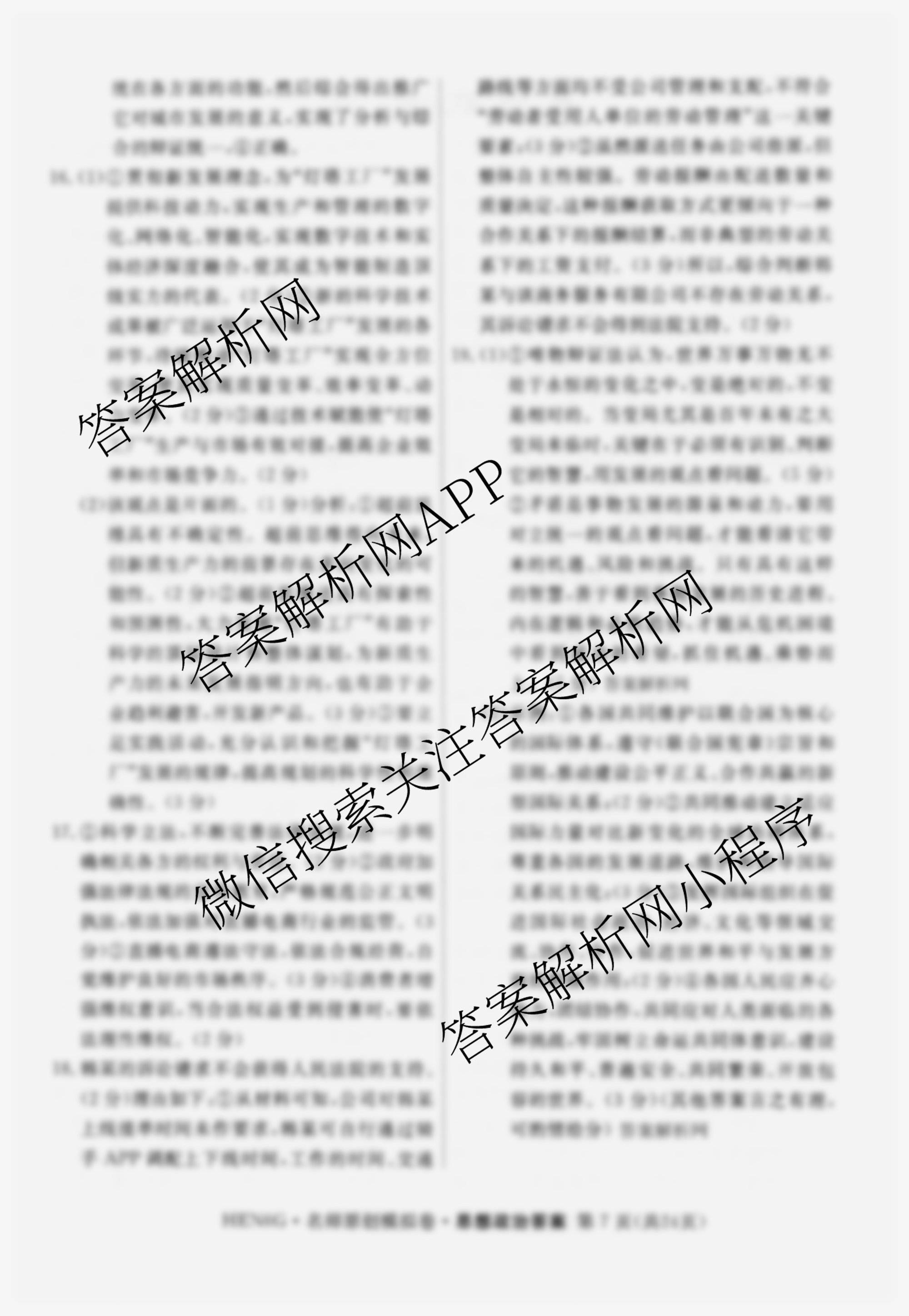 - 2026届([高三]总复习名师原创模拟)(二)2政治(HEN6G)答案
