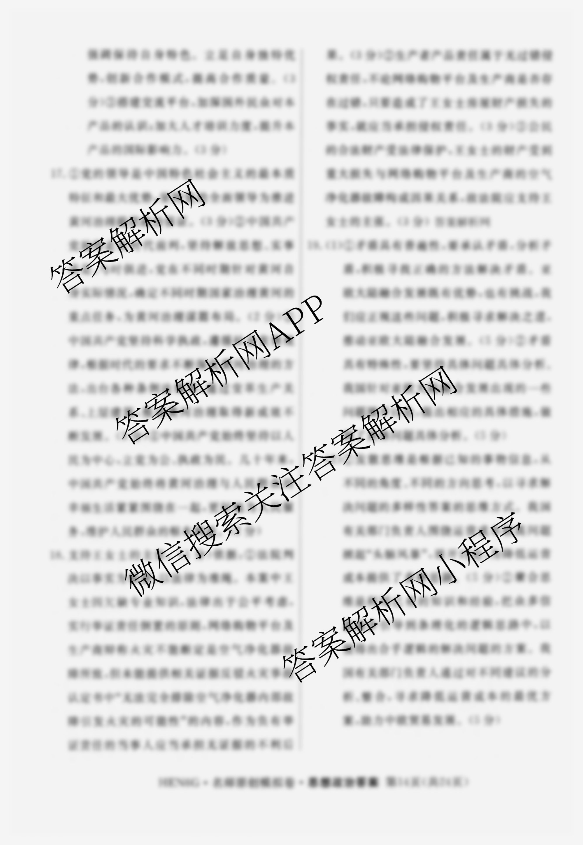 - 2026届(高三)[总复习名师原创模拟](四)4政治(HEN6G)答案