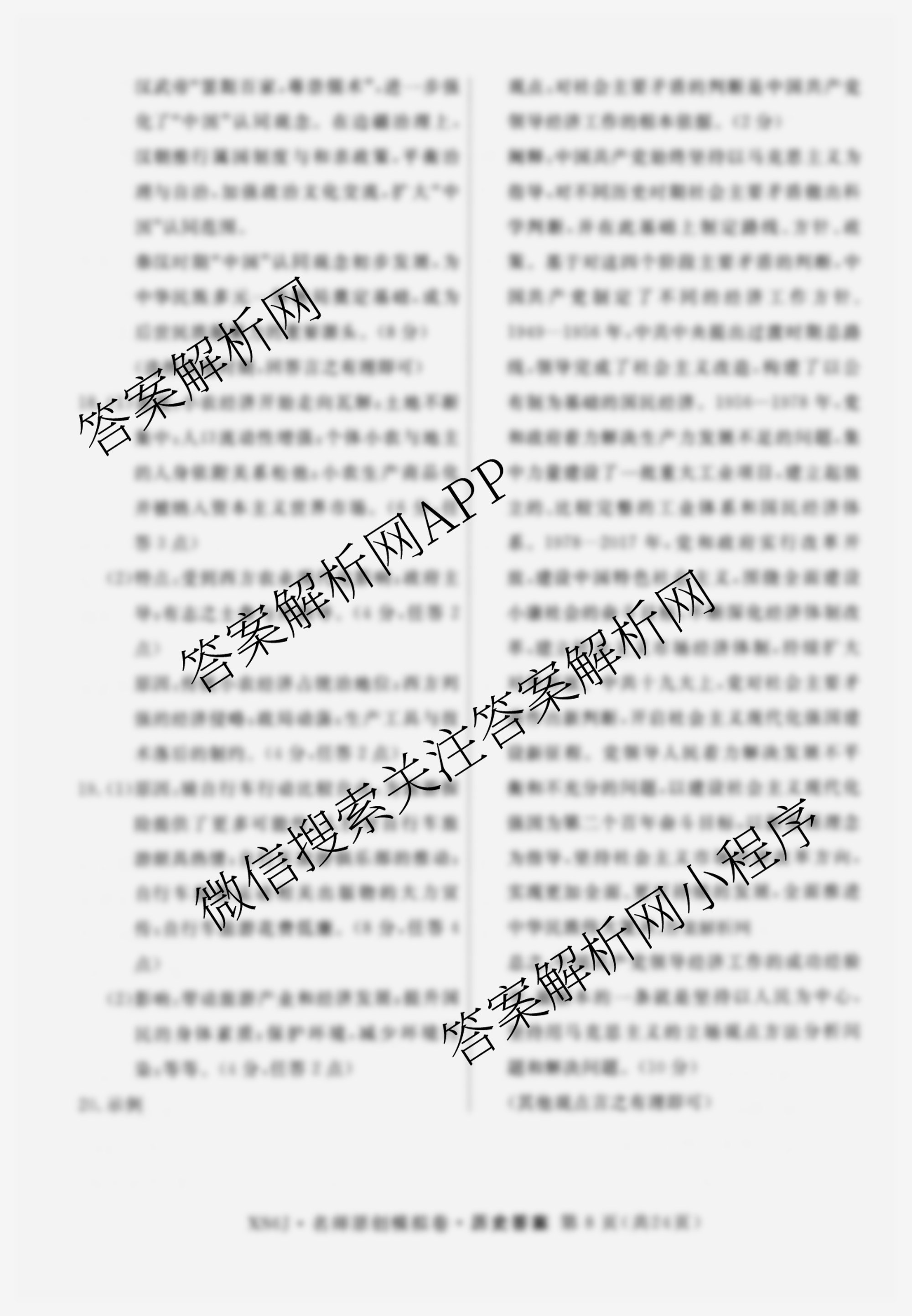 - 高三2026届(总复习名师原创模拟)(二)2历史(XS6)答案