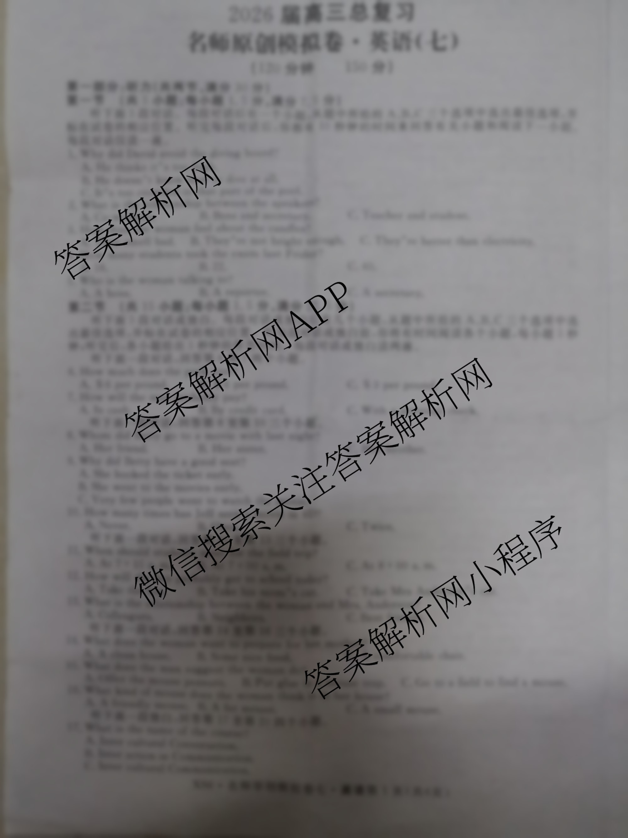 - 2026届[(高三)总复习·名师原创模拟](七)7英语(新S6)答案
