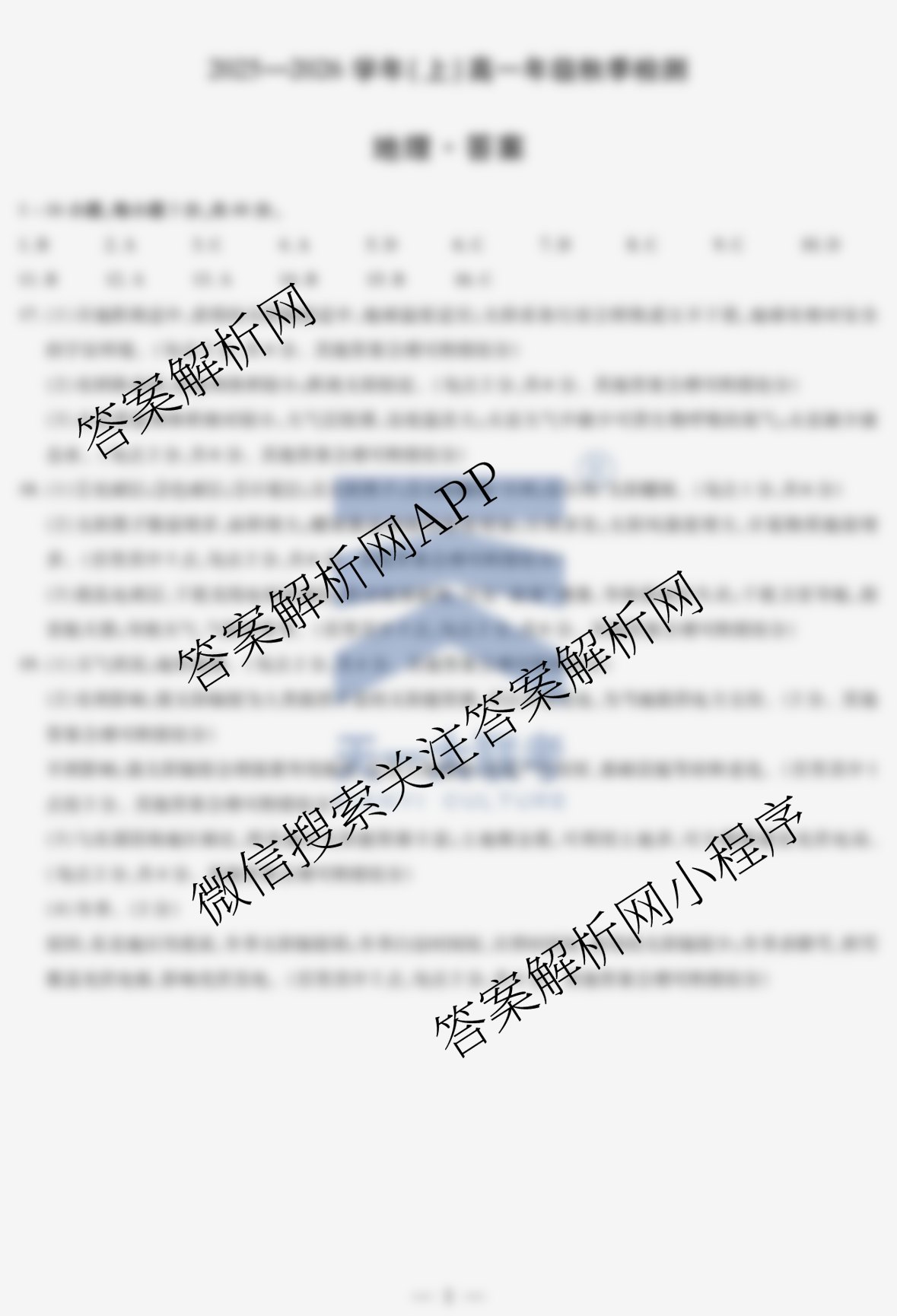 - 2025-2026[高一]天一大联考河南省学年(上)年级秋季检测地理答案