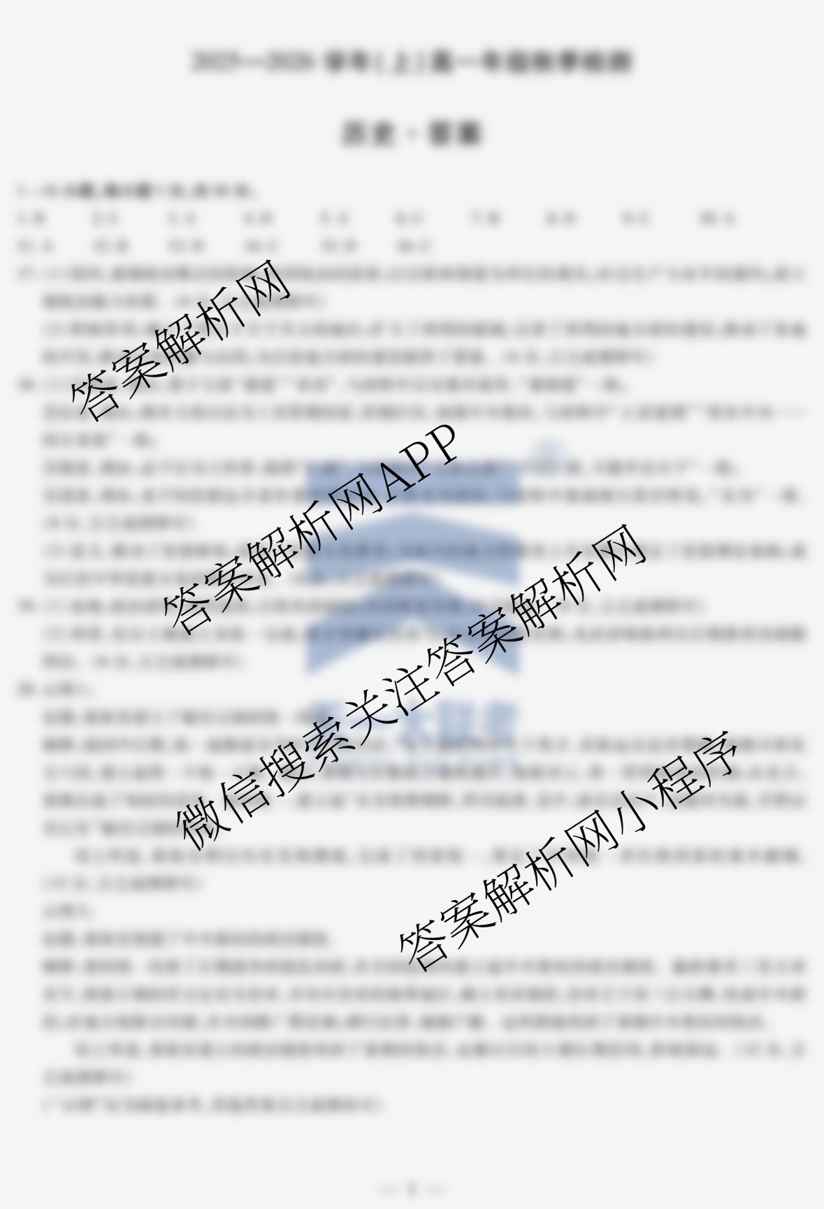 - 2025-2026(天一大联考)·河南省学年(上)(高一)年级秋季检测历史答案