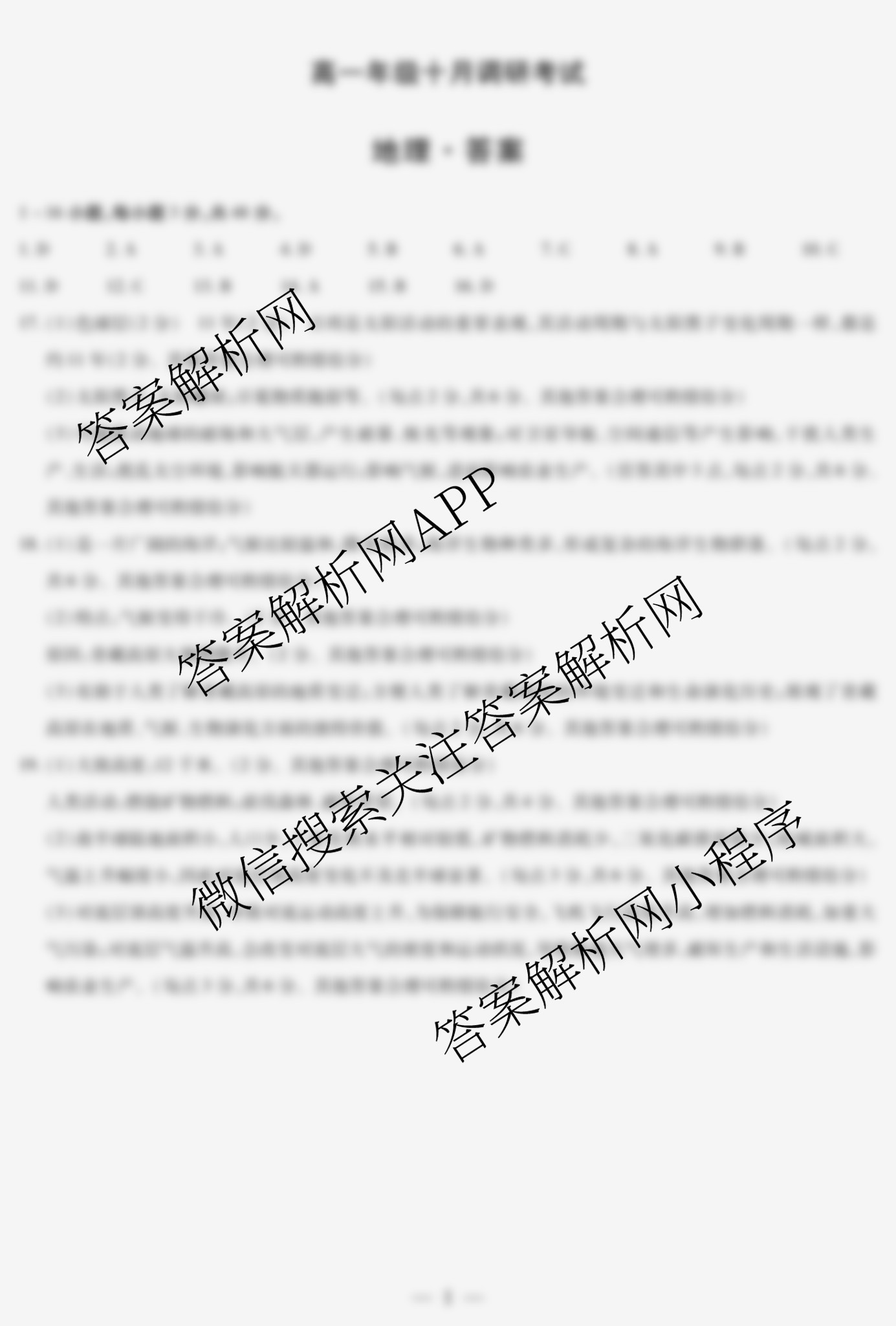 - [高一](天一大联考)安徽2025-2026年级十月调研考试地理(安庆专版)答案