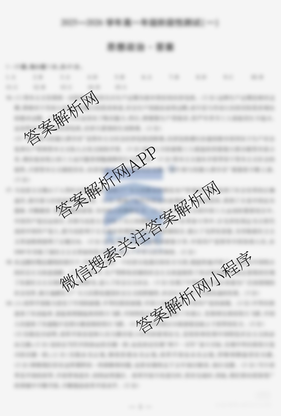 - 2025-2026 [天一大联考]·学年(上)(高一)年级阶段性测试(一)政治(专版)答案