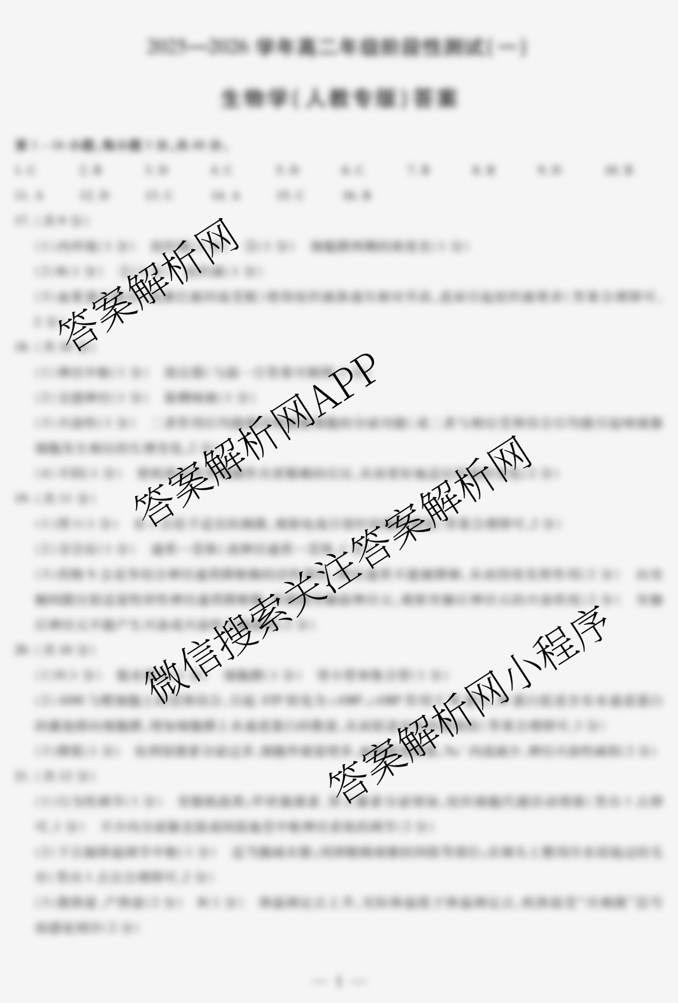 - [高二][天一大联考]·2025~2026学年年级阶段性测试(一)生物(专版)答案