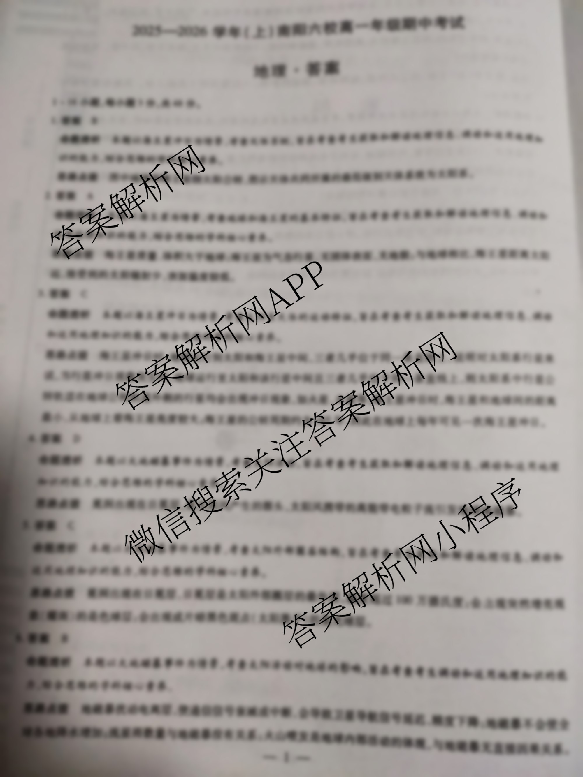 天一大联考2025-2026学年(上)南阳六校高一年级期中考试地理答案,目前学普试卷已经汇总了天一大联考2025-2026学年(上)南阳六校高一年级期中考试地理答案的各科答案和试卷,获取更多天一大联考答案解析,请在关注本站。
