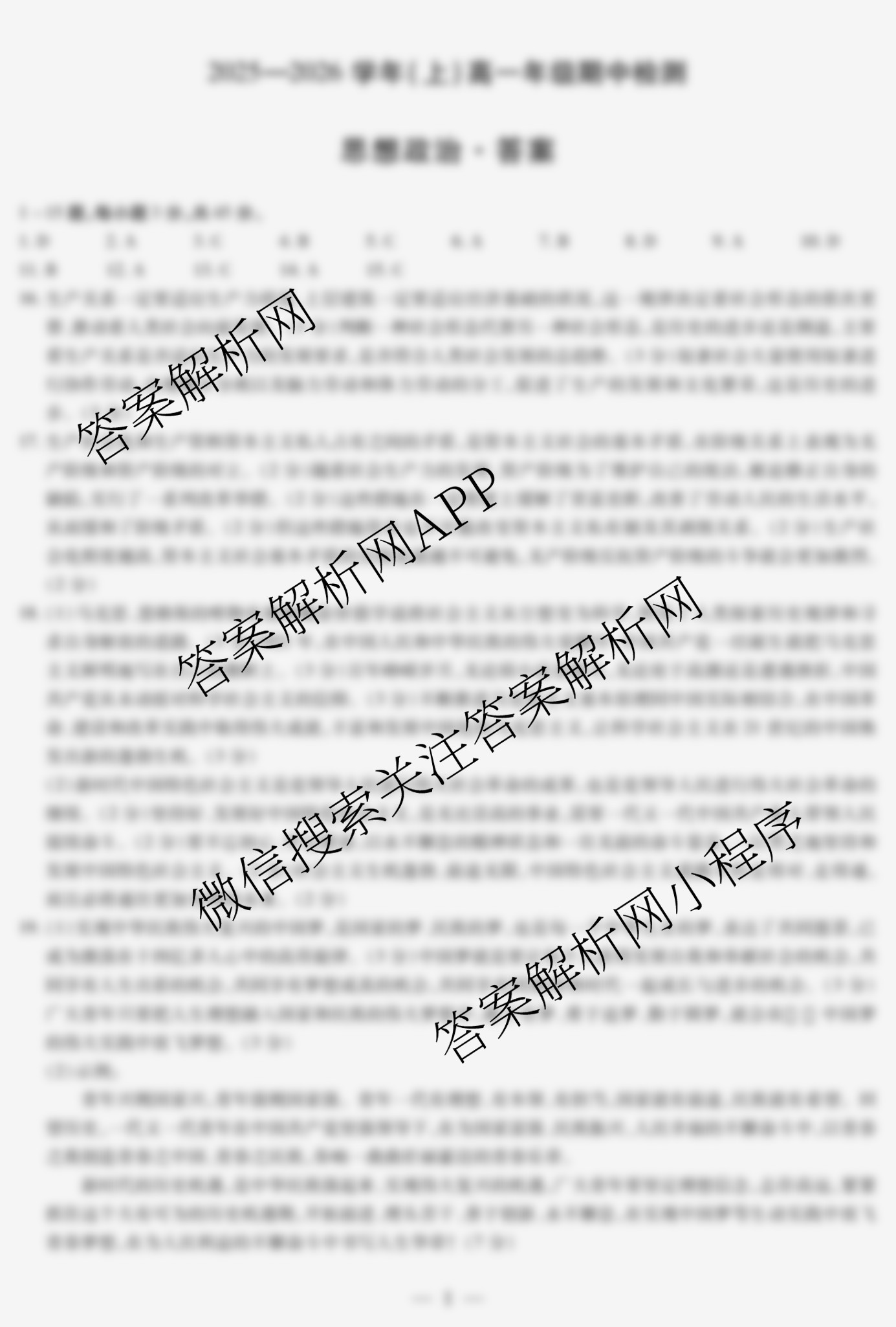 - 2025-2026(天一大联考)·河南省学年(上)[高一]年级期中检测政治答案