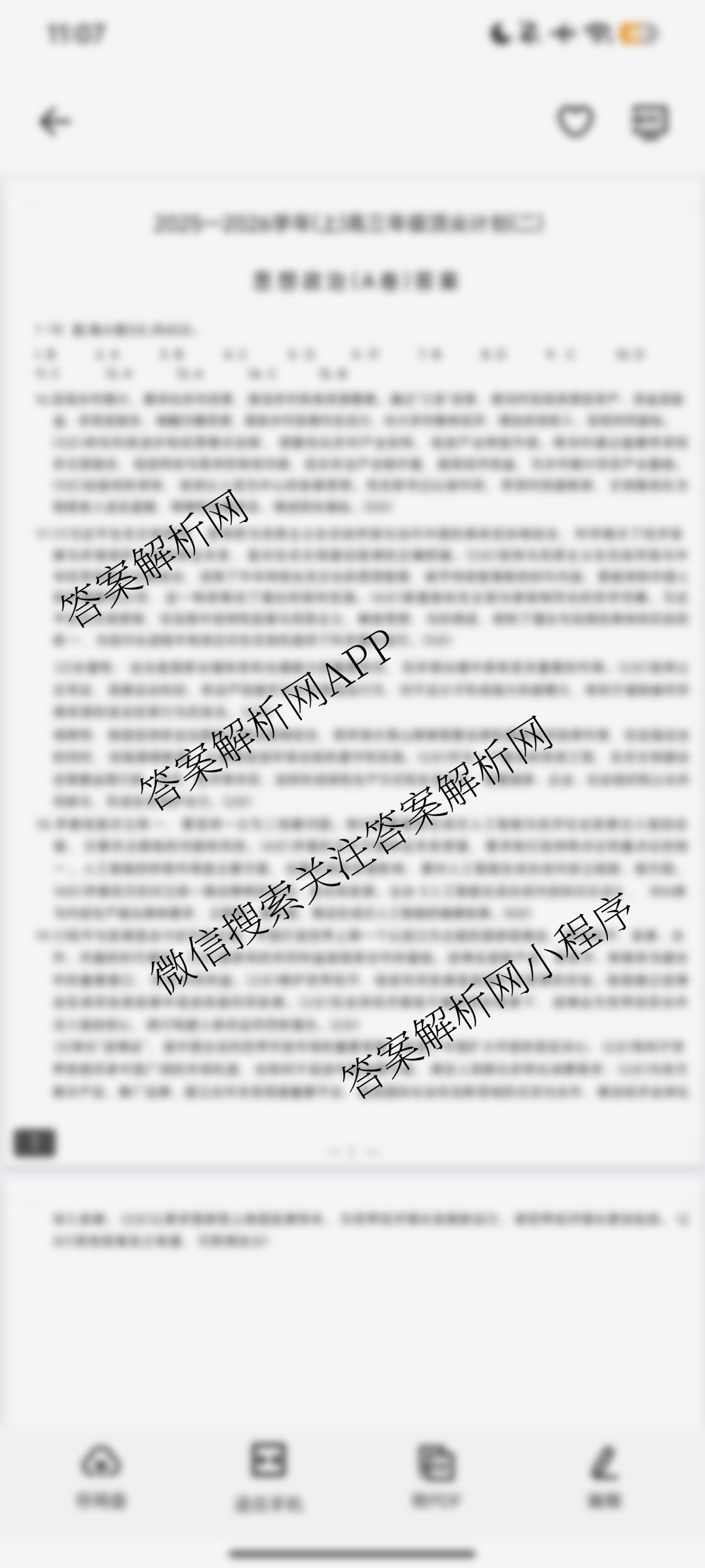 - (高三)[天一大联考]·2025-2026学年(上)年级顶尖计划(二)政治(专版B卷)答案