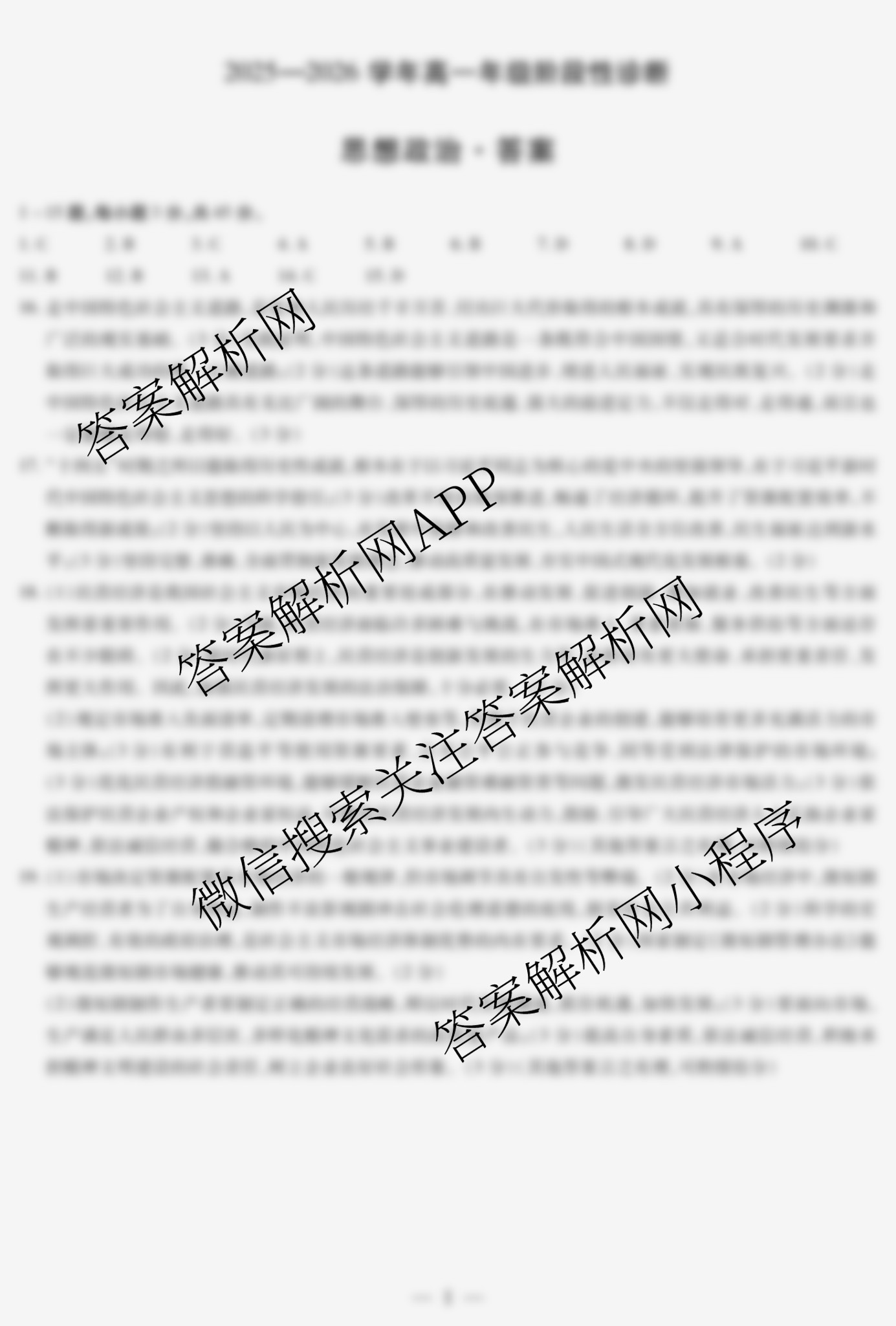(高一)[天一大联考]河南省2025~2026学年年级阶段性诊断(12.16)政治答案