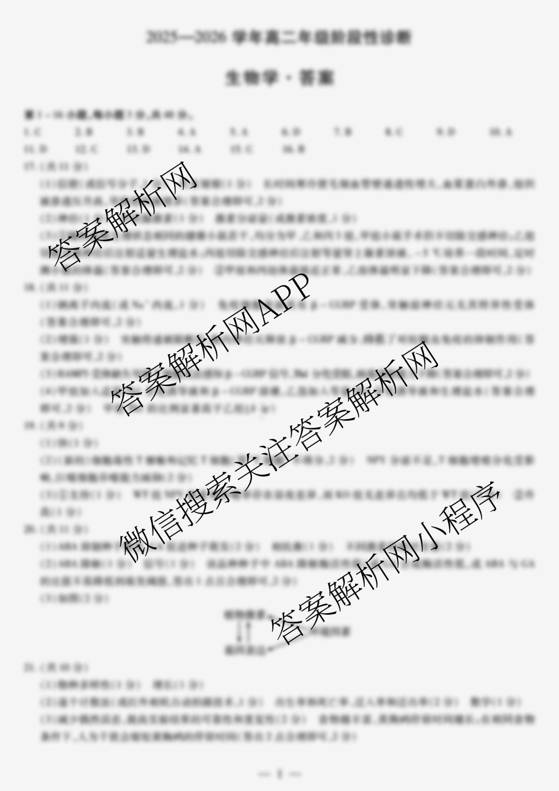 2025-2026(高二)(天一大联考)河南省学年年级阶段性诊断(12.17)生物答案