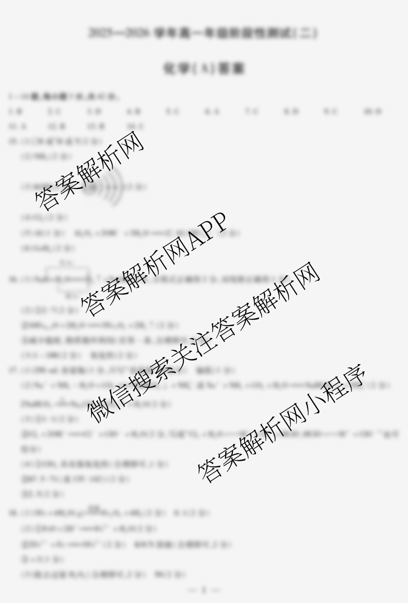 - (高一)(天一大联考)·河南2025-2026学年年级阶段性测试(二)化学(A)答案