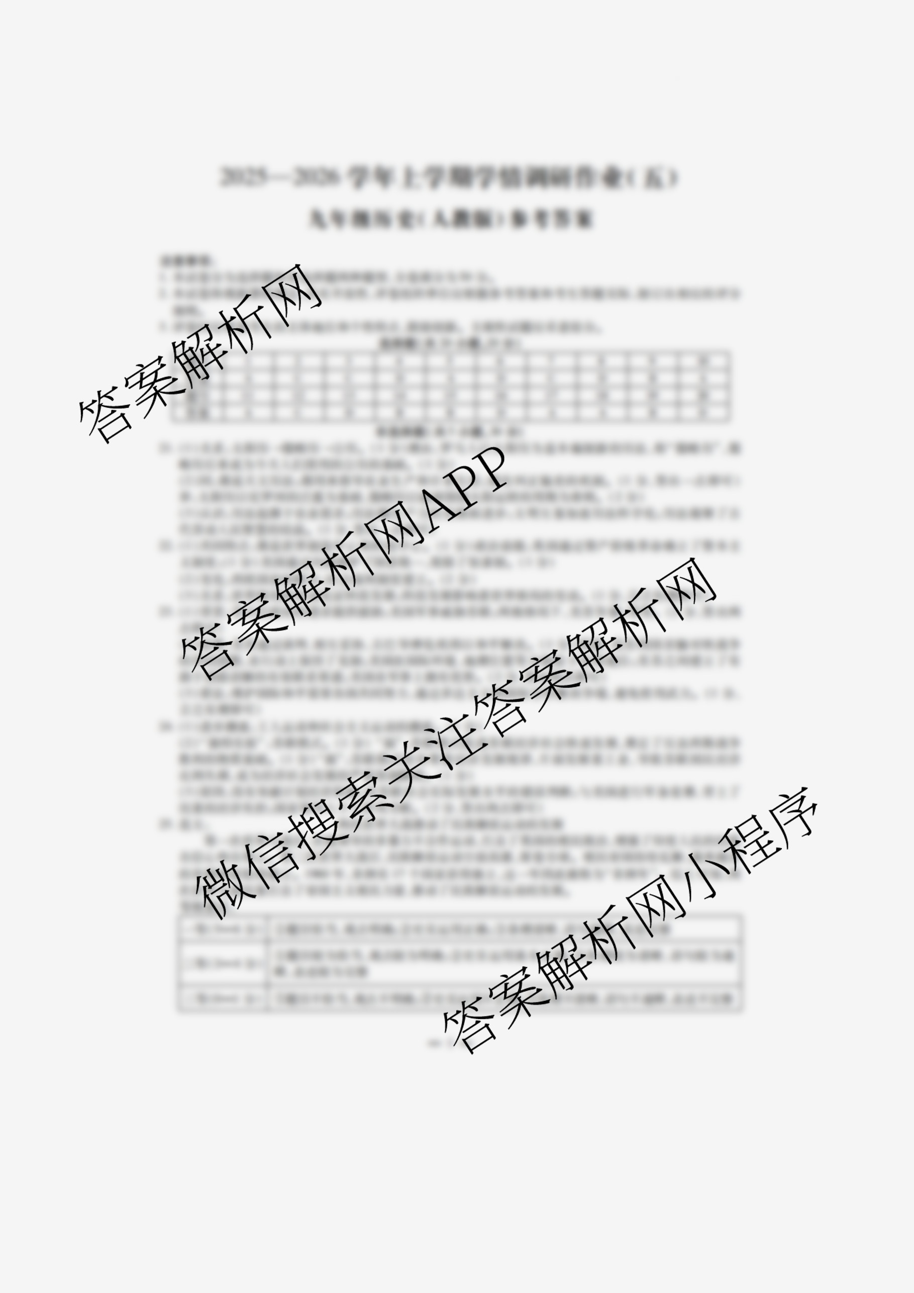 - 2025~2026河南省周口市学年上学期学情调研作业(五)(九年级)历史(人教版)答案