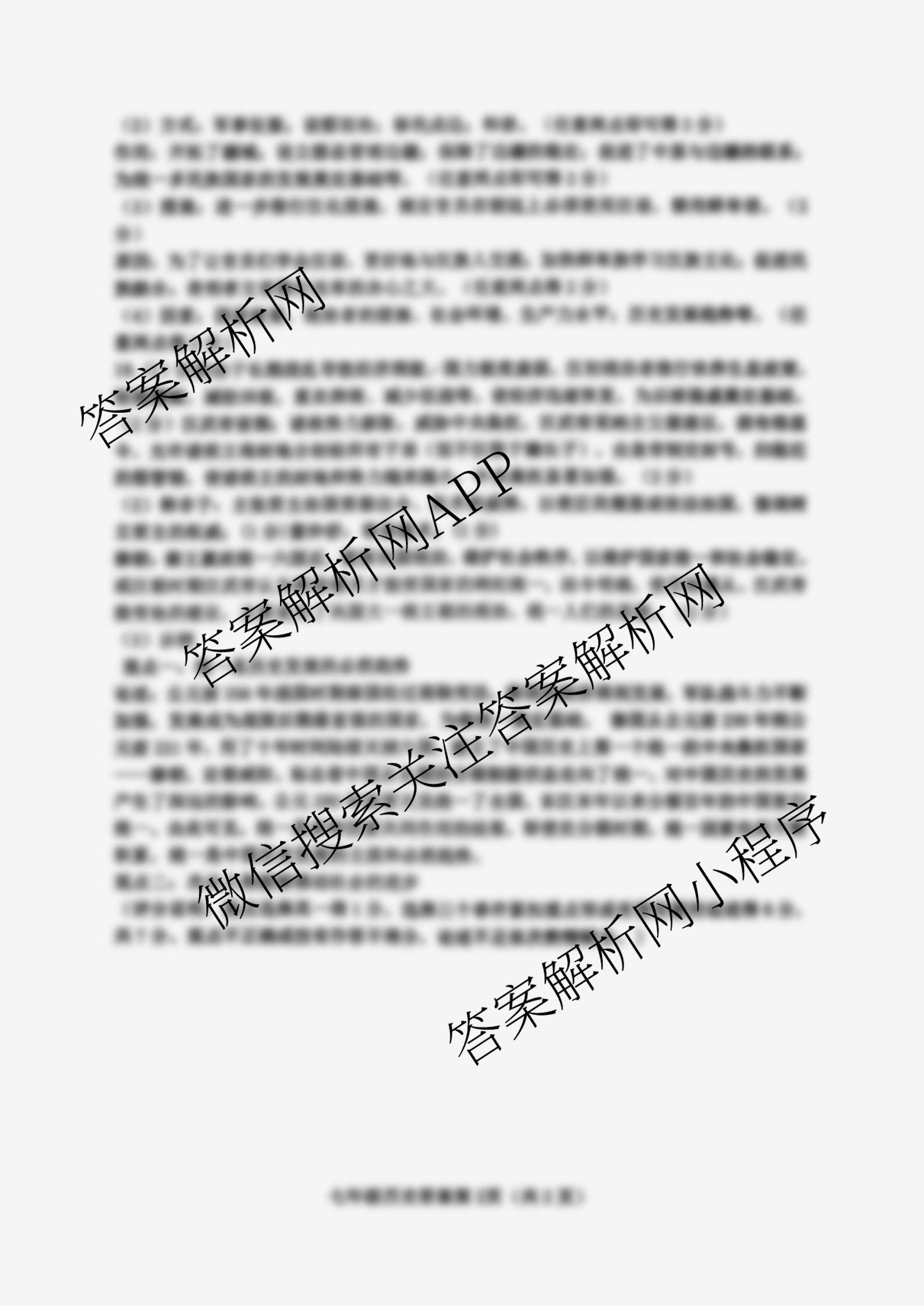 - [七年级]太谷区2025-2026学年度第一学期期末质量检测试题(卷)历史答案