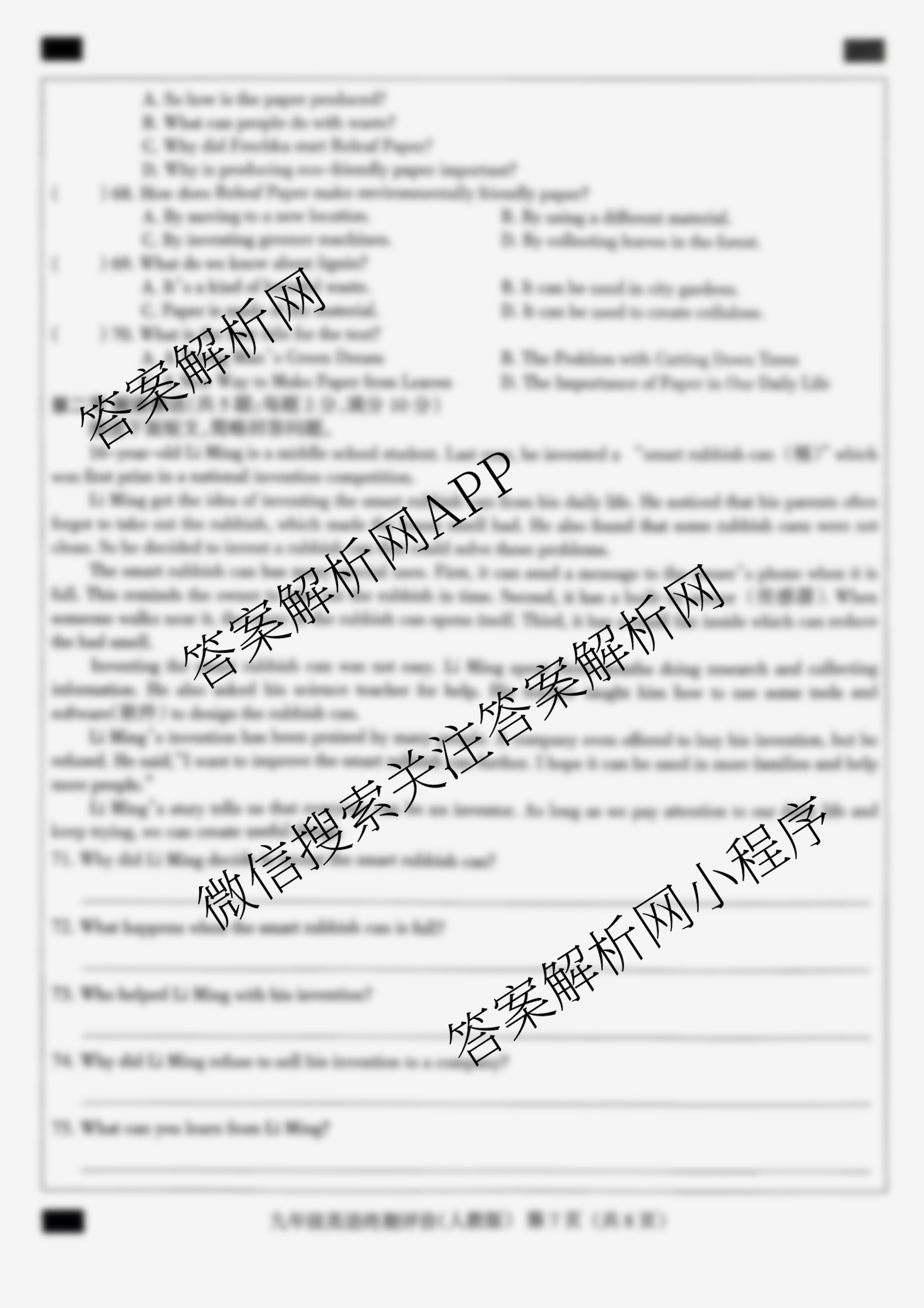 河北省2025-2026学年第一学期九年级学业水平终期评价英语(人教版)试题,目前学普试卷已经汇总了河北省2025-2026学年第一学期九年级学业水平终期评价英语(人教版)试题的各科答案和试卷,获取更多地方模拟答案解析,请在关注本站。