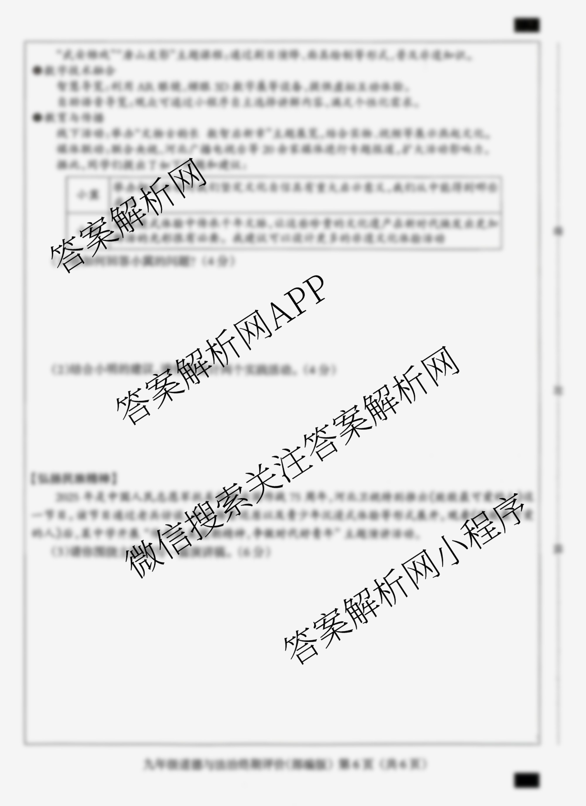 - 九年级河北省2025~2026学年第一学期学业水平终期评价道德与法治(部编版)答案