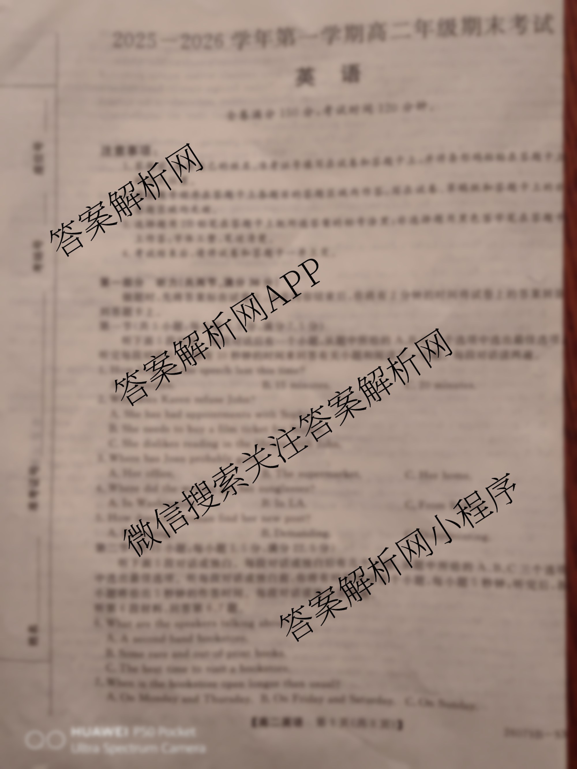 山西省2025-2026学年第一学期高二年级期末考试(26079B-SX)英语试题,目前学普试卷已经汇总了山西省2025-2026学年第一学期高二年级期末考试(26079B-SX)英语试题的各科答案和试卷,获取更多地方模拟答案解析,请在关注本站。