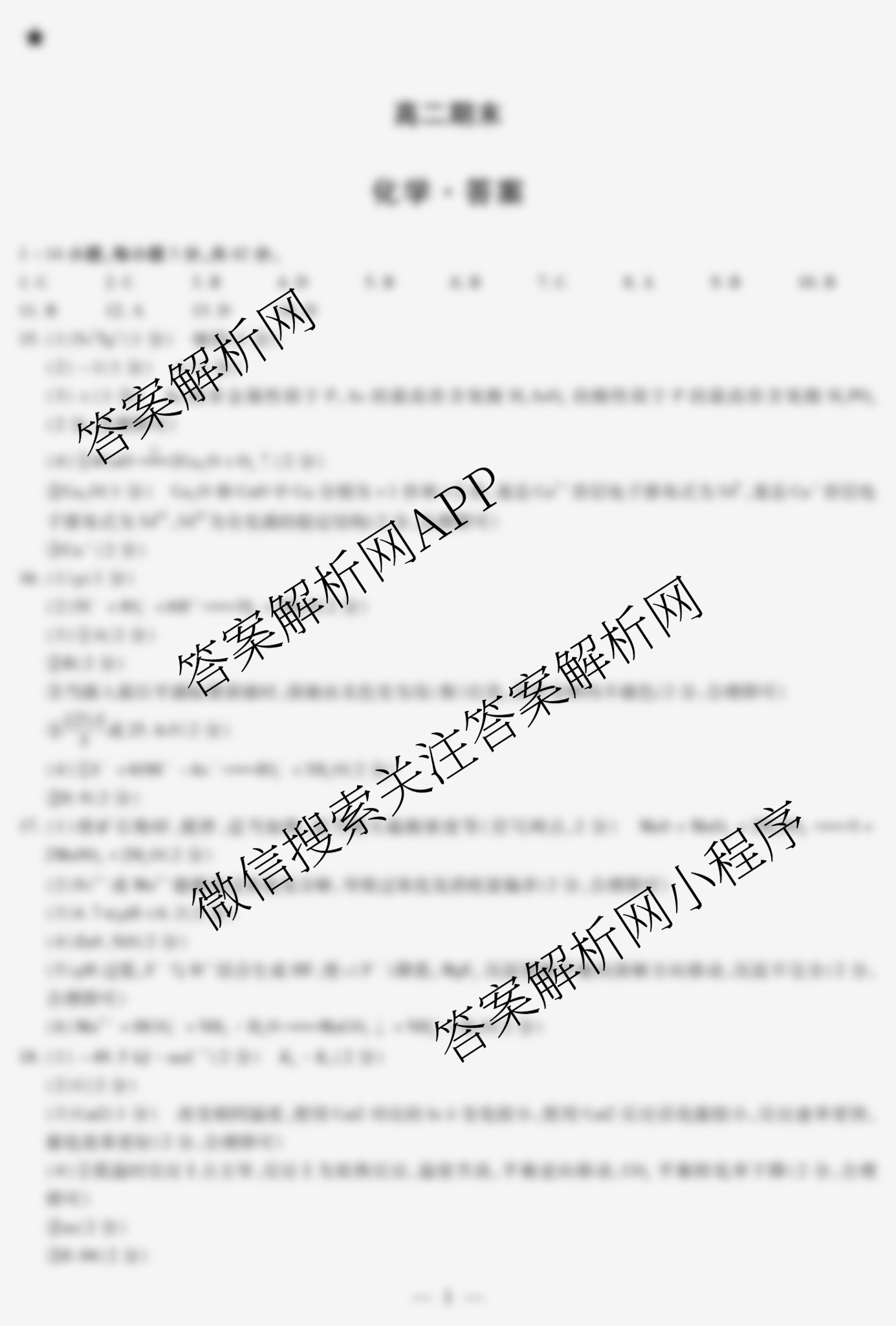 - 2025-2026[高二]天一大联考·安徽学年(上)年级期末考试(★)化学答案