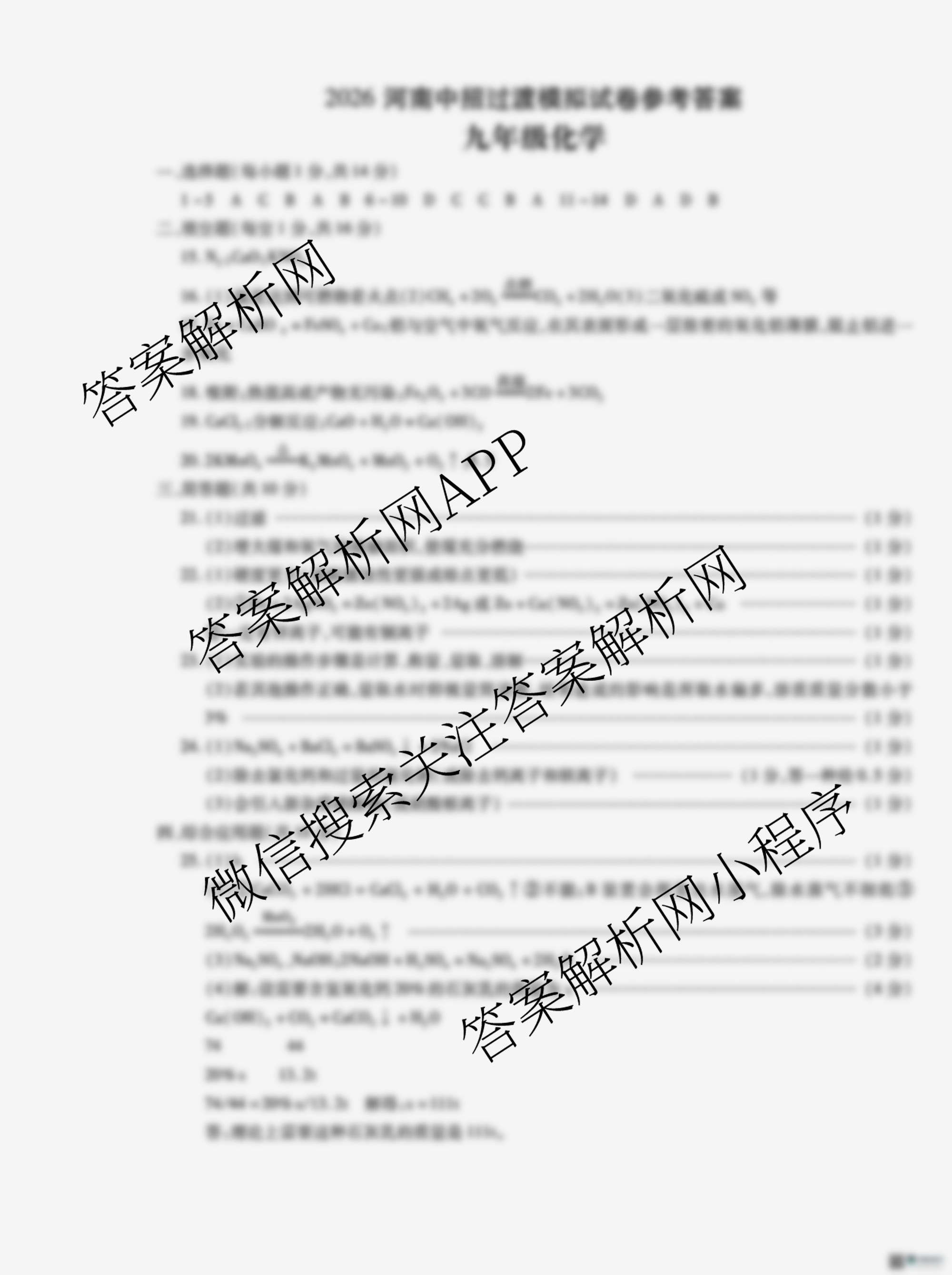 - 九年级2026河南中招过渡模拟试卷(2月)化学答案