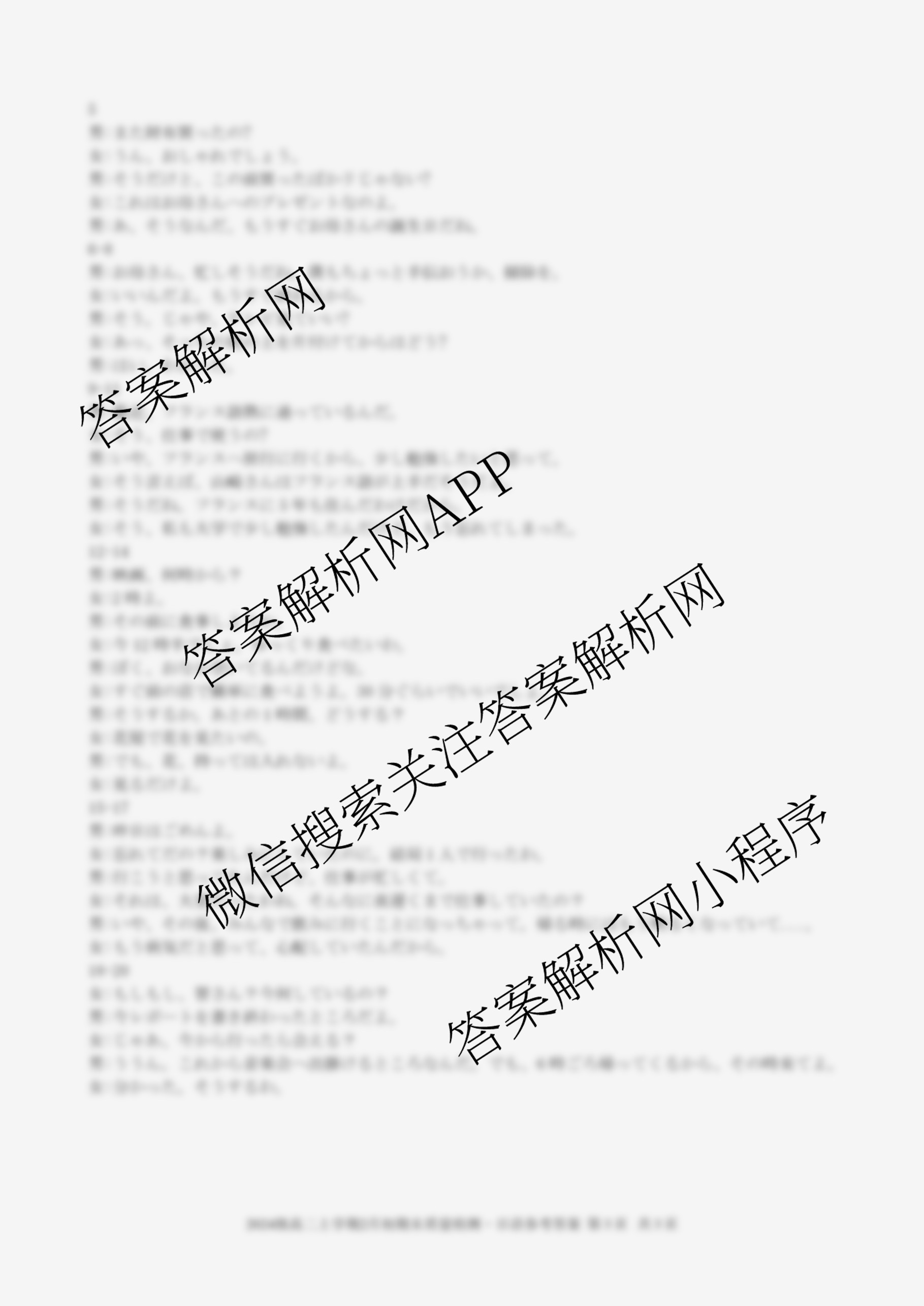 - (高二)安徽省2024级上学期2月初期末质量检测日语答案